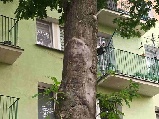 Dendrolog Mateusz Fieducik tłumaczył, że na pniu widać spękania, otarcia i przebarwienia, które nie są niczym specjalnym.