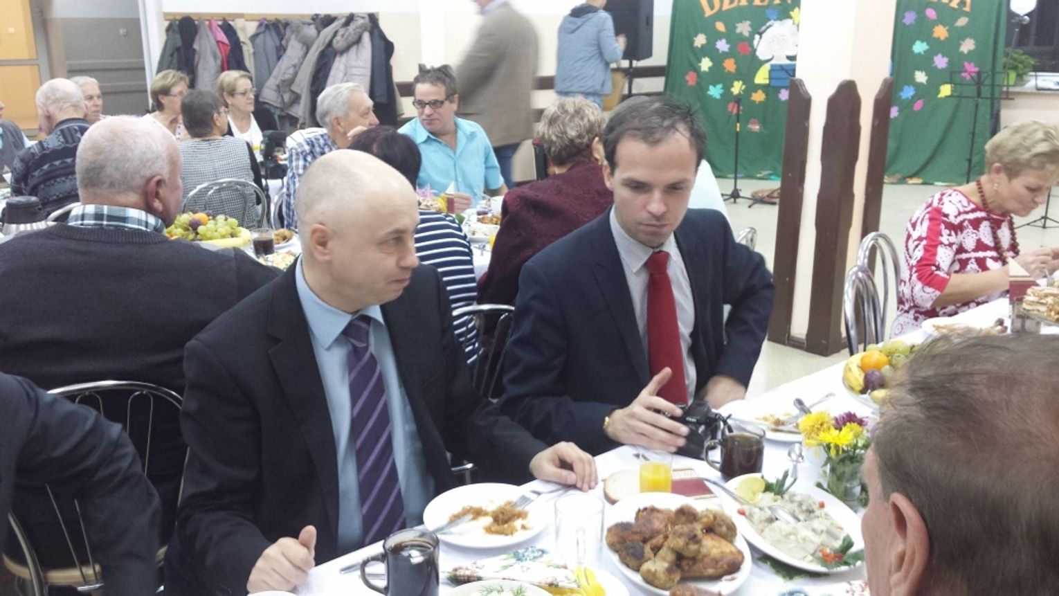 Wspólne śpiewy i tańce przerywane były dowcipami opowiadanymi przez pierwszą wśród sołtysów damę rozrywki - sołtys Sobieradza Danutę Świderek. Z zaproszonych gości, z uwagi na prace w Sejmie RP, nie mógł przybyć poseł Artur Szałabawka. W jego imieniu przybyli - dyrektor biura poselskiego Andrzej Kwinto oraz asystent posła Michał Krupiński. Panowie w imieniu posła przekazali seniorom życzenia i tort. Wśród gości byli także burmistrz Mieczysław Sawaryn i wiceprzewodniczący Rady Miasta Zdzisław Kmieciak. dost.