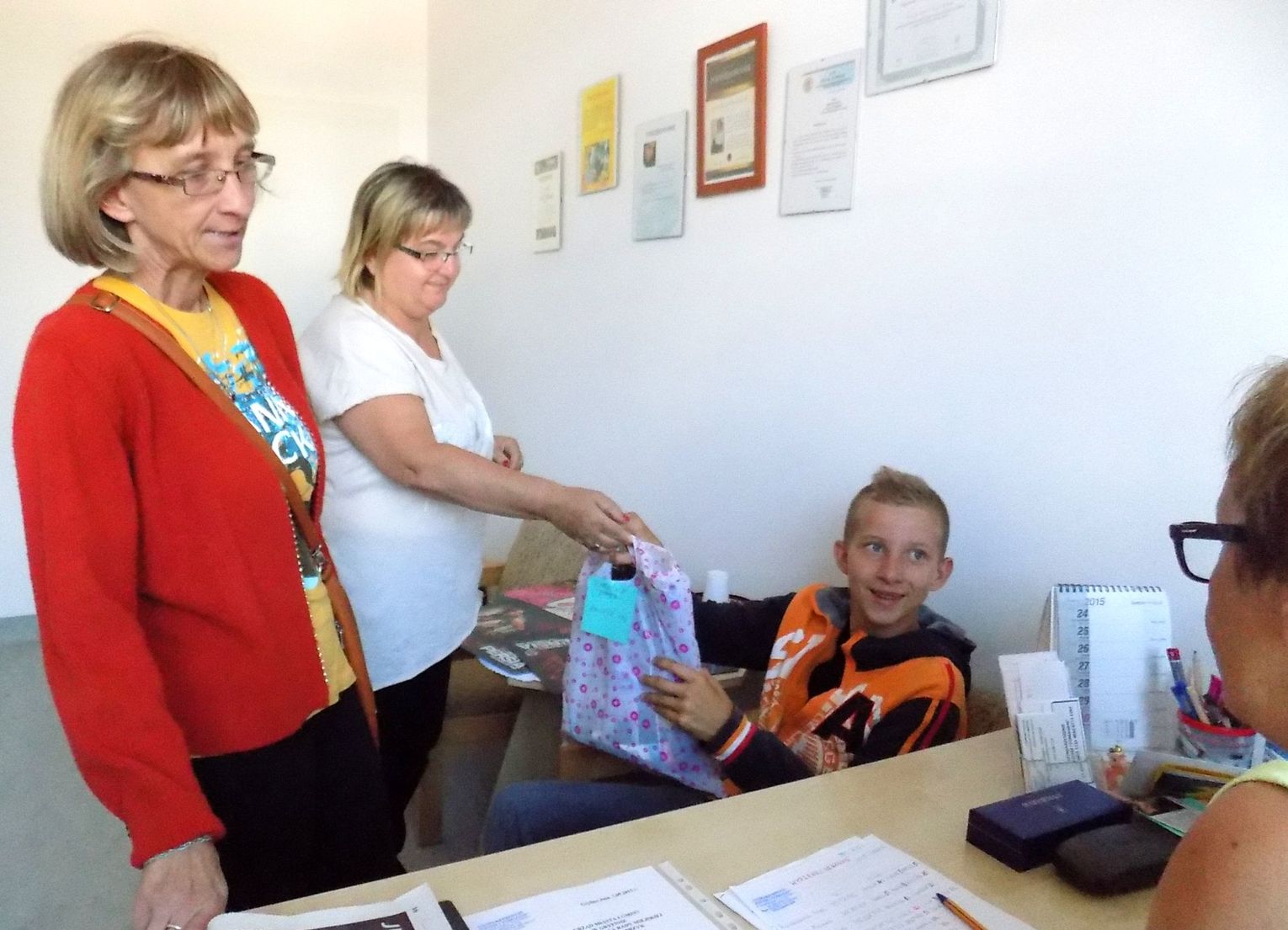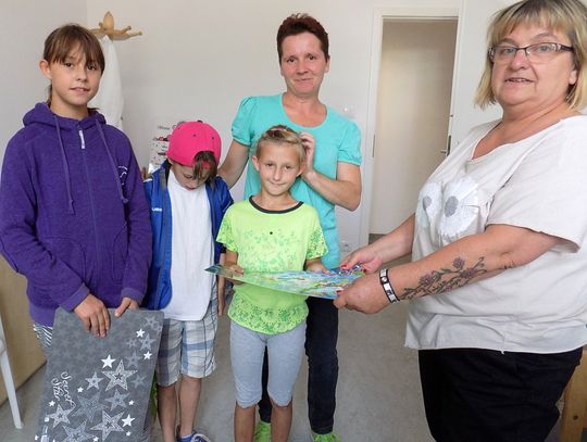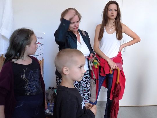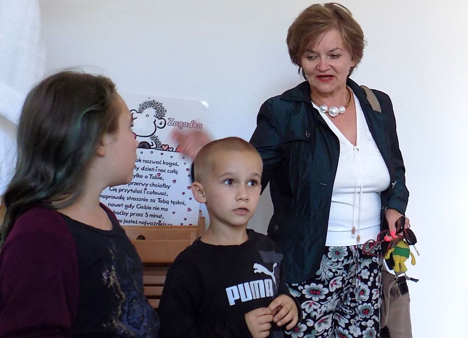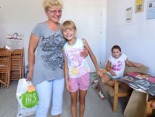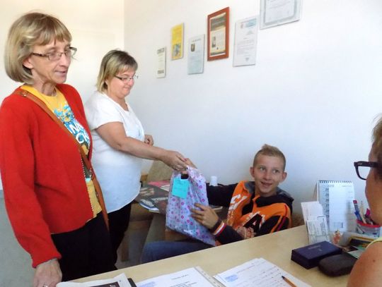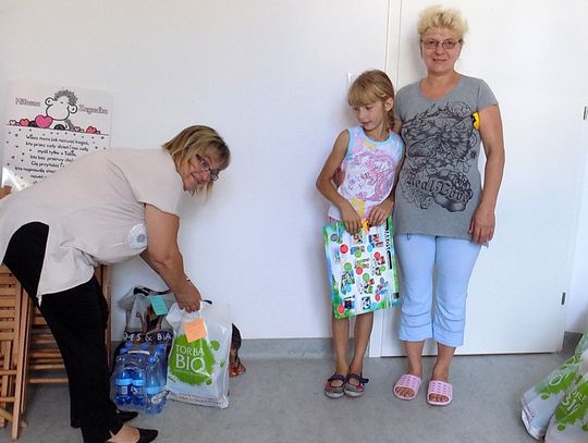 Kacperek cieszy się z piórnika. Zna panią Ewę. Przychodził na korepetycje. Kolorowe patyczki spodobały się najmłodszemu chłopczykowi. Pani Ewa Olejarz, przewodnicząca „Amazonek”, a równocześnie asystent rodziny przyszła ze swoimi podopiecznymi. Majka, Julia i Eliza przyszły z mamą.