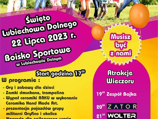 Wydarzenie rozpocznie się o godzinie 17. Organizatorzy przygotowali bogaty program, w którym m.in. gry i zabawy dla dzieci, dmuchane zamki, warsztaty ceramiczne, prezentacja pojazdów grupy Militarni Gryfino i okolice itp. Zostanie również wręczona nagroda dla najlepszego ucznia z Lubiechowa Dolnego.