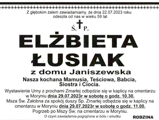 Elżbieta Łusiak – zmarła 22 lipca 2023 r. w wieku 59 lat