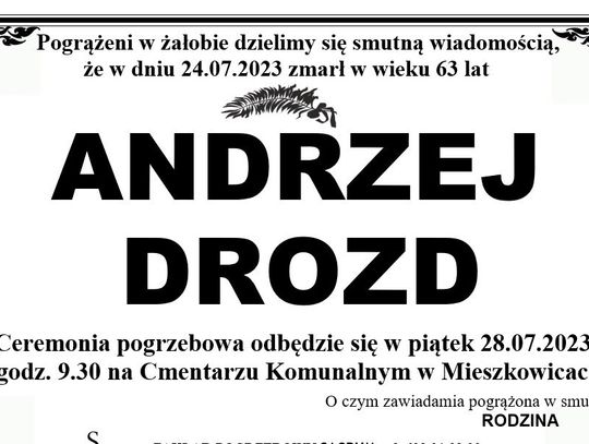 Andrzej Drozd – zmarł 24 lipca 2023 r. w wieku 63 lat