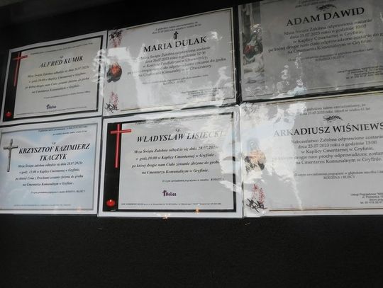 Msza św. żałobna odprawiona zostanie 26 lipca 2023 r. o godz. 10.00 w kaplicy cmentarnej w Gryfinie.