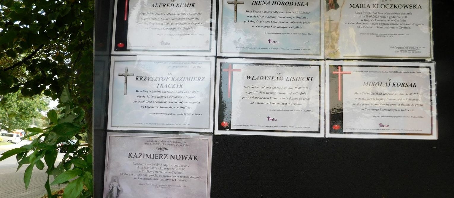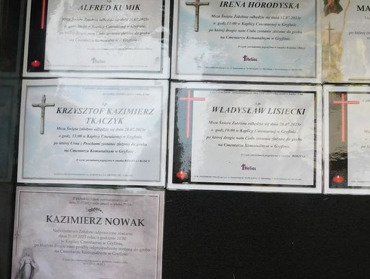 Msza św. żałobna odprawiona zostanie 31 lipca 2023 r. o godz. 13.00 w kaplicy cmentarnej w Gryfinie.