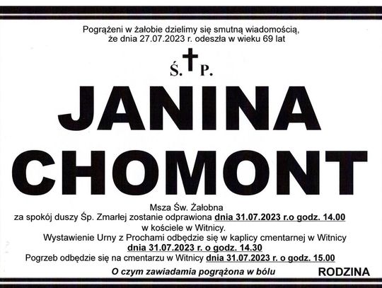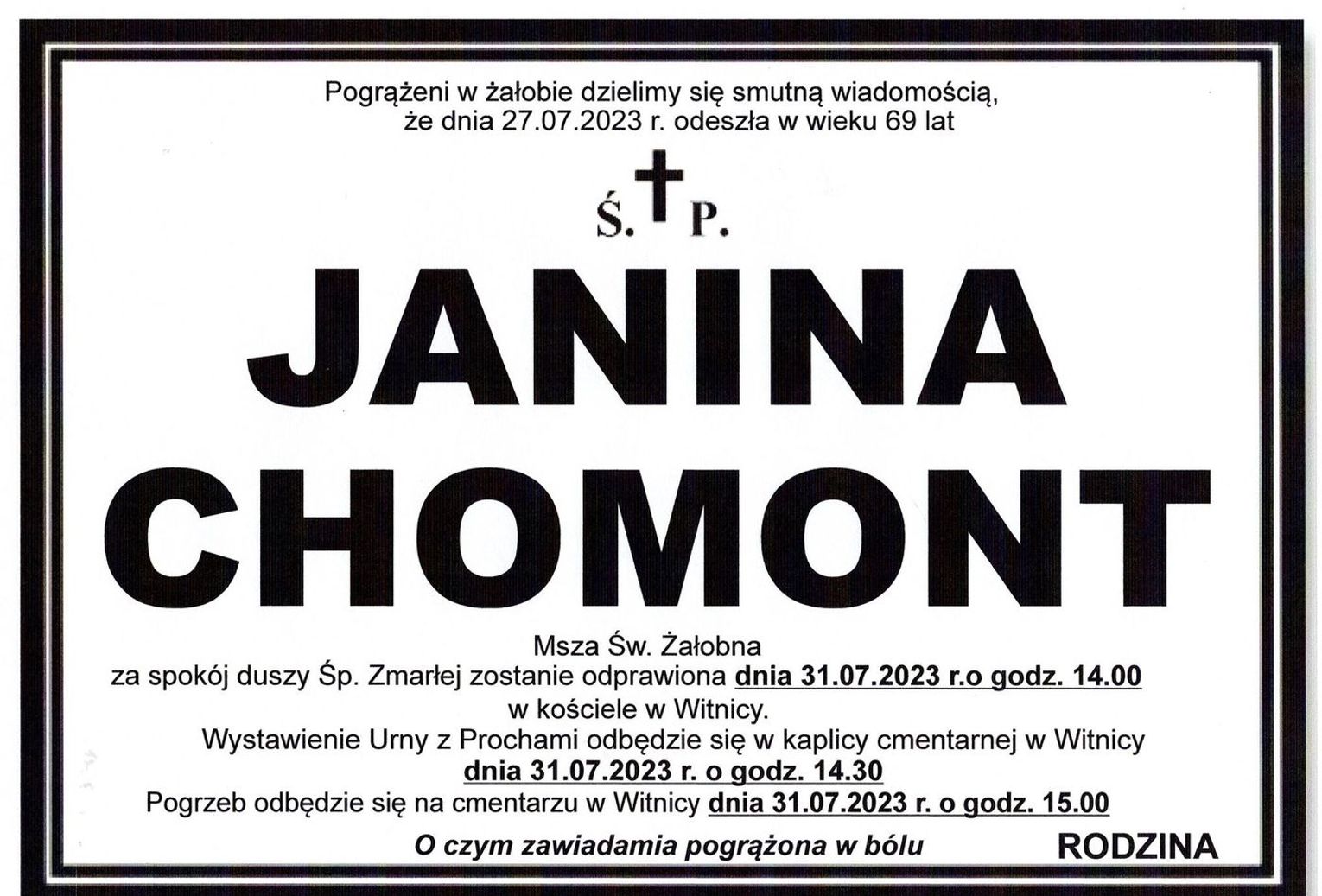 Janina Chomont – zmarła 27 lipca 2023 r. w wieku 69 lat