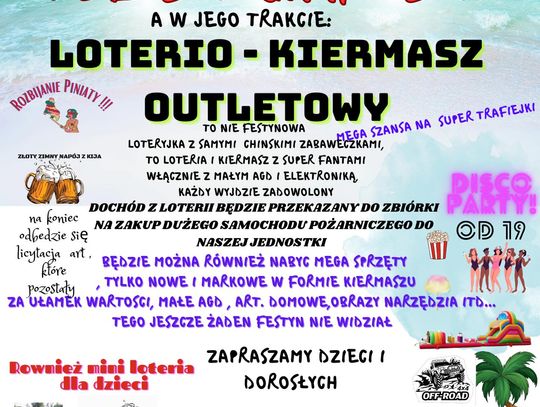 Cały dochód z festynu zostanie przeznaczony na wsparcie lokalnej jednostki straży pożarnej, której potrzebne jest nowe i wyposażone w pełni duże auto gaśnicze.