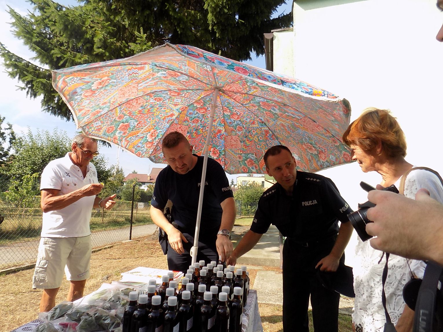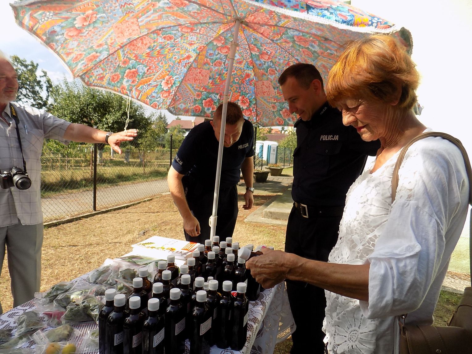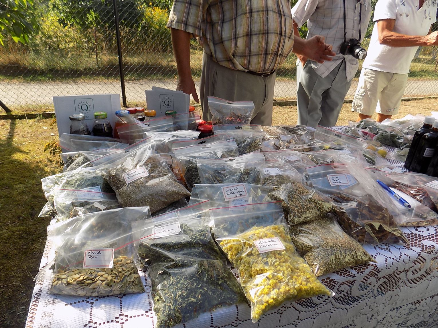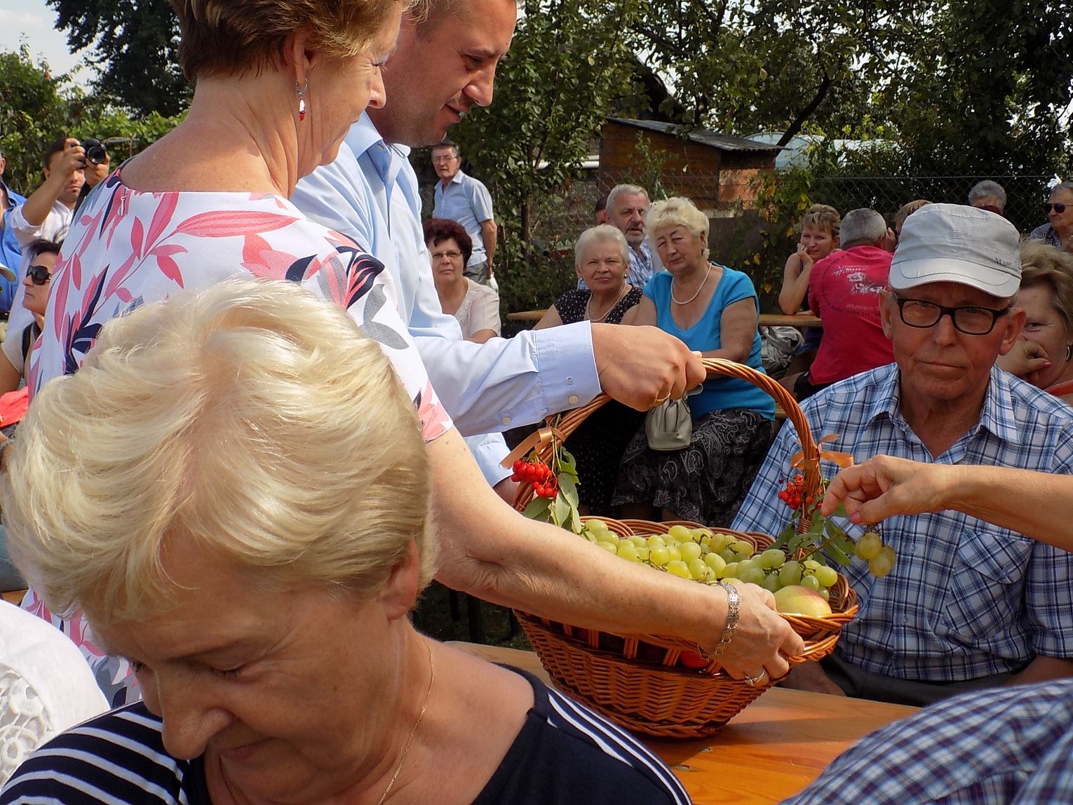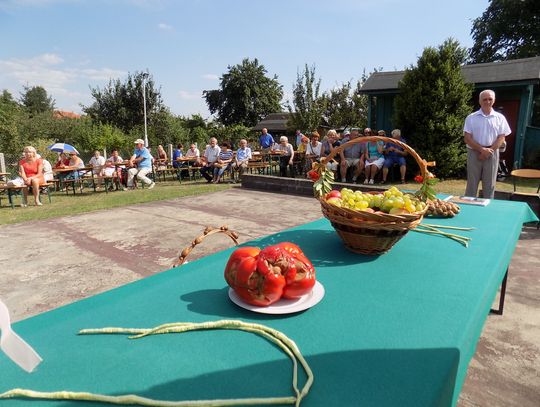 Obecny na spotkaniu zastępca burmistrza Tomasz Miler otrzymał kosz z owocami, którymi - jak zwyczaj każe - obdzielił wszystkich obecnych, co wcale nie było takie łatwe. Trzeba przyznać, że i stół z plonami tym razem nie prezentował się imponująco, chociaż honor starał się uratować ogromny pomidor. Zainteresowaniem cieszyły się za to zioła, soki i syropy Władysława Sorbiana.