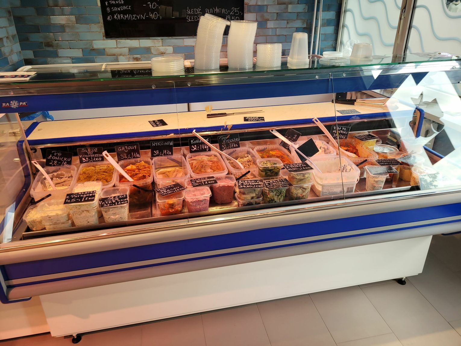 W ofercie: ryba świeża, wędzona, mrożona, sałatki, ryba wędzona na zamówienie.
