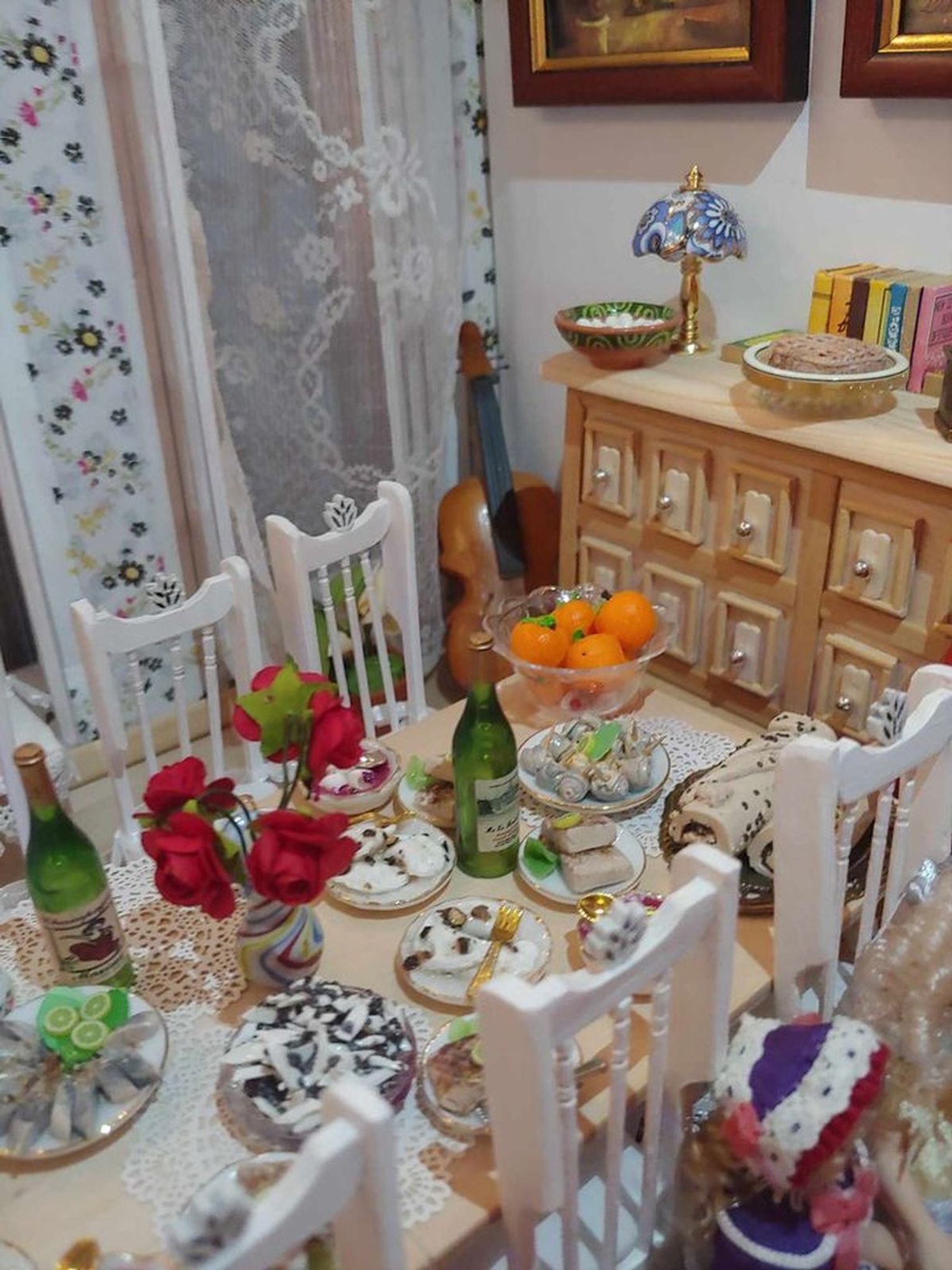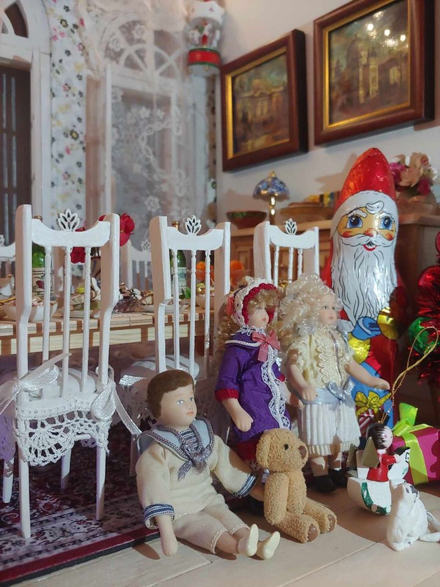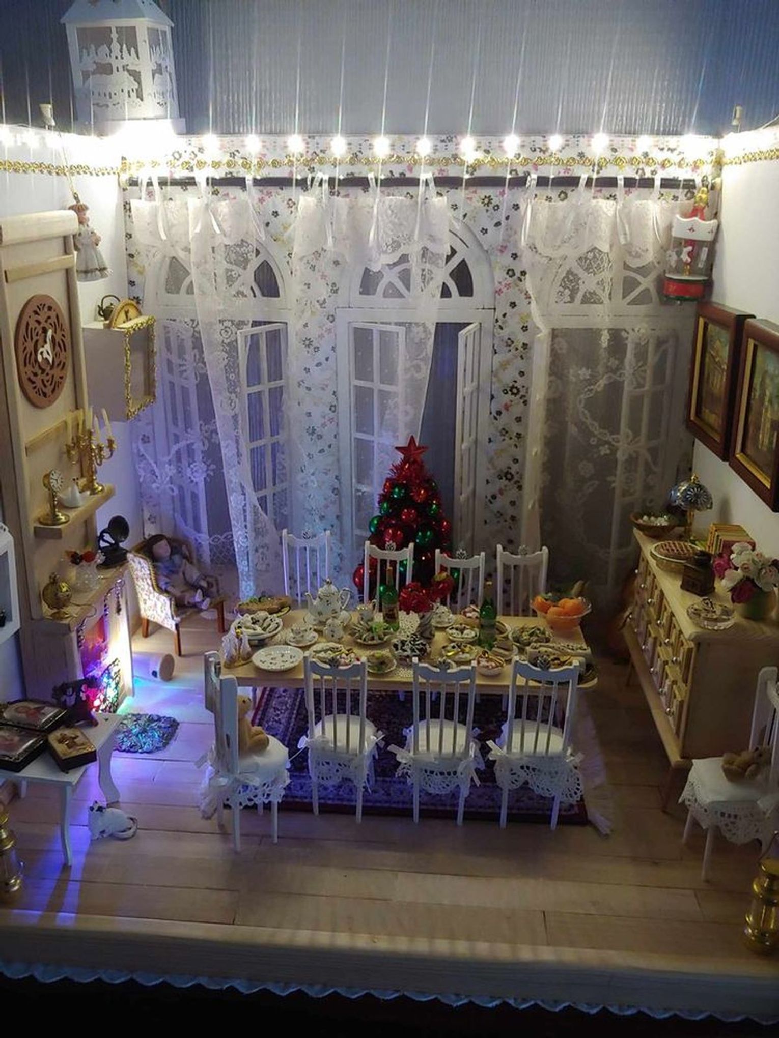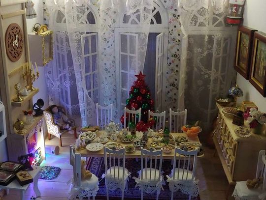 Trzecia praca utworzona w tym roku to Złoty Salon. Prace nad nim trwały od września do Wigilii i zakończyłam położeniem prezentów pod choinką.