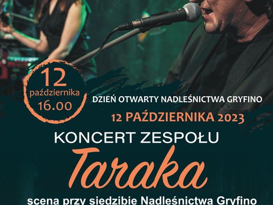 Już w najbliższy czwartek - 12 października zapraszamy do siedziby Nadleśnictwa Gryfino (1 Maja 4 Gryfino) na spotkanie z leśnikami i muzyką zespołu Taraka. W programie leśnego festynu, który towarzyszy obchodom jubileuszu 100-lecia Lasów Państwowych i 50-lecia Nadleśnictwa Gryfino jest m.in. niezwykły pokaz kulinarny i degustacja potraw inspirowanych leśnymi produktami (dziczyna, dary runa leśnego). Smakowite dania przyrządzi i serwować będzie Karol Kus – lider zespołu muzycznego Taraka i prowadzący program o leśnych kulinariach „Masz to w lesie”. O godzinie 16.00 przeniesie się na scenę przy siedzibie nadleśnictwa, by wraz z zespołem Taraka dać niezwykły koncert. W trakcie wydarzenia otwarte będą stoiska edukacyjne, na których poza sprawdzeniem wiedzy leśnej w grach i konkursach otrzymać będzie można materiały informacyjne, mapy turystyczne i publikacje dotyczące terenu nadleśnictwa (i nie tylko). O godzinie 13.30 zapraszamy również do zwiedzania siedziby nadleśnictwa z przewodnikiem i spotkania z pracownikami biura, którzy na co dzień zajmują się m.in. koordynacją pracy służby terenowej.