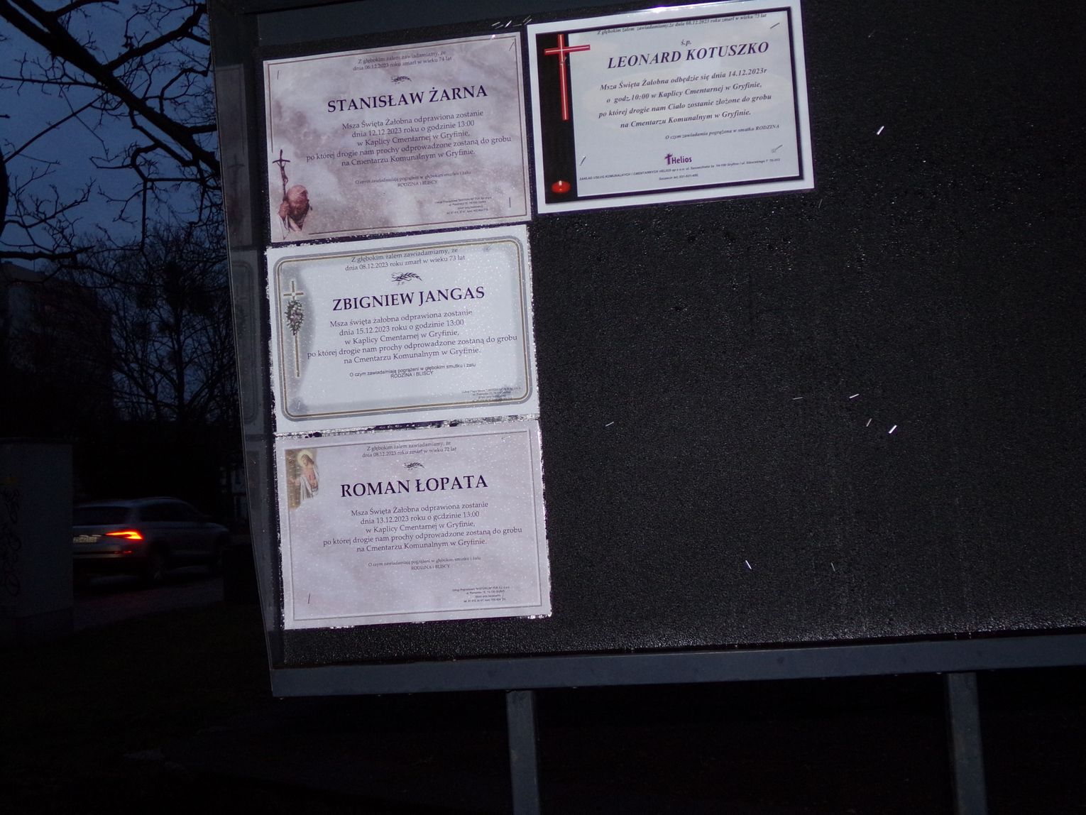 Msza św. żałobna odprawiona zostanie 14 grudnia 2023 r. o godz. 10.00 w kaplicy cmentarnej w Gryfinie.