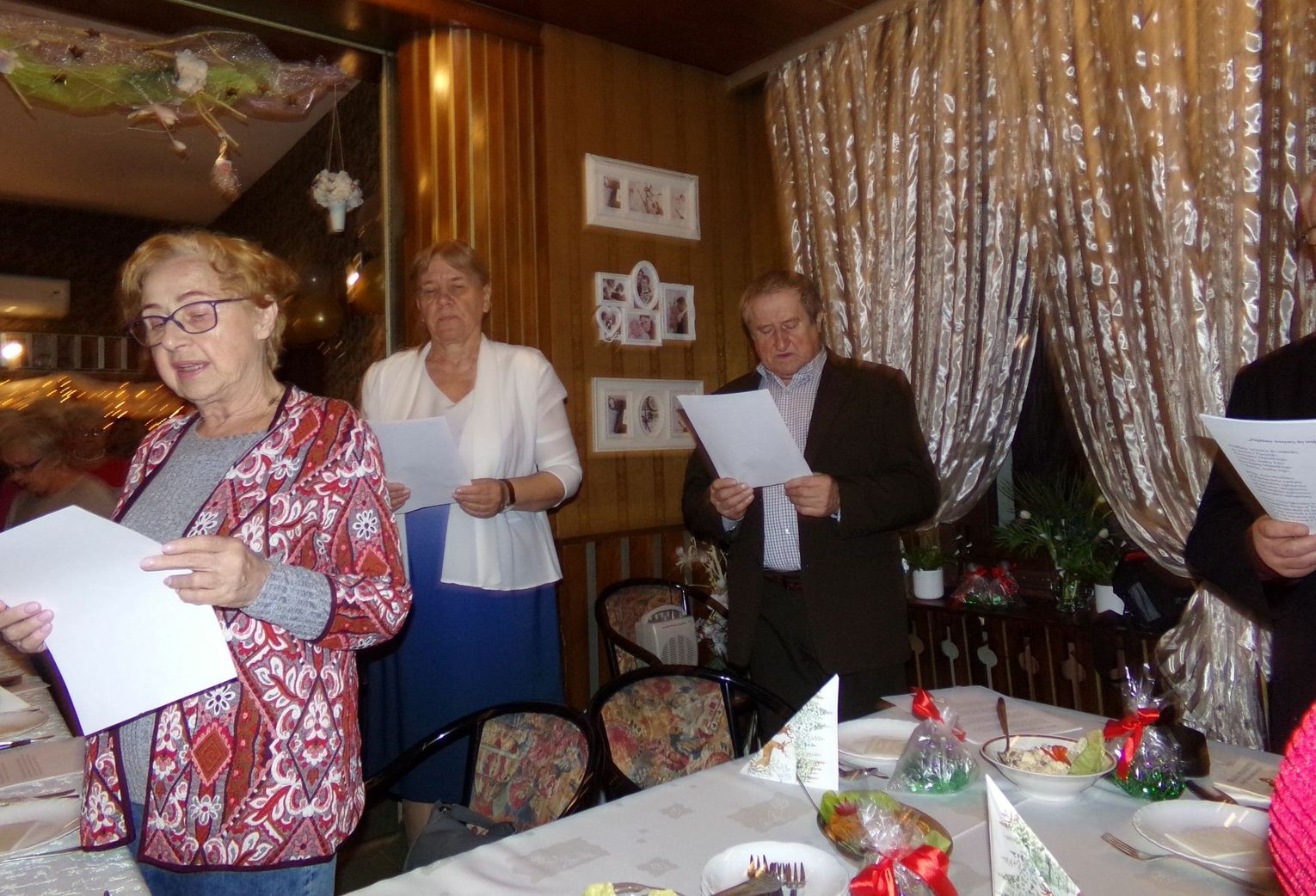 Pojawienie się, ks. Stanisława Helaka uczestnicy powitali z wielką radością. Na początku spotkania wszyscy pomodlili się, dzielili opłatkiem i składali sobie świąteczne życzenia. O wyjątkową atmosferę zadbał zespół „Macierzanka”, który zachwycił obecnych swoim śpiewem kolęd.
