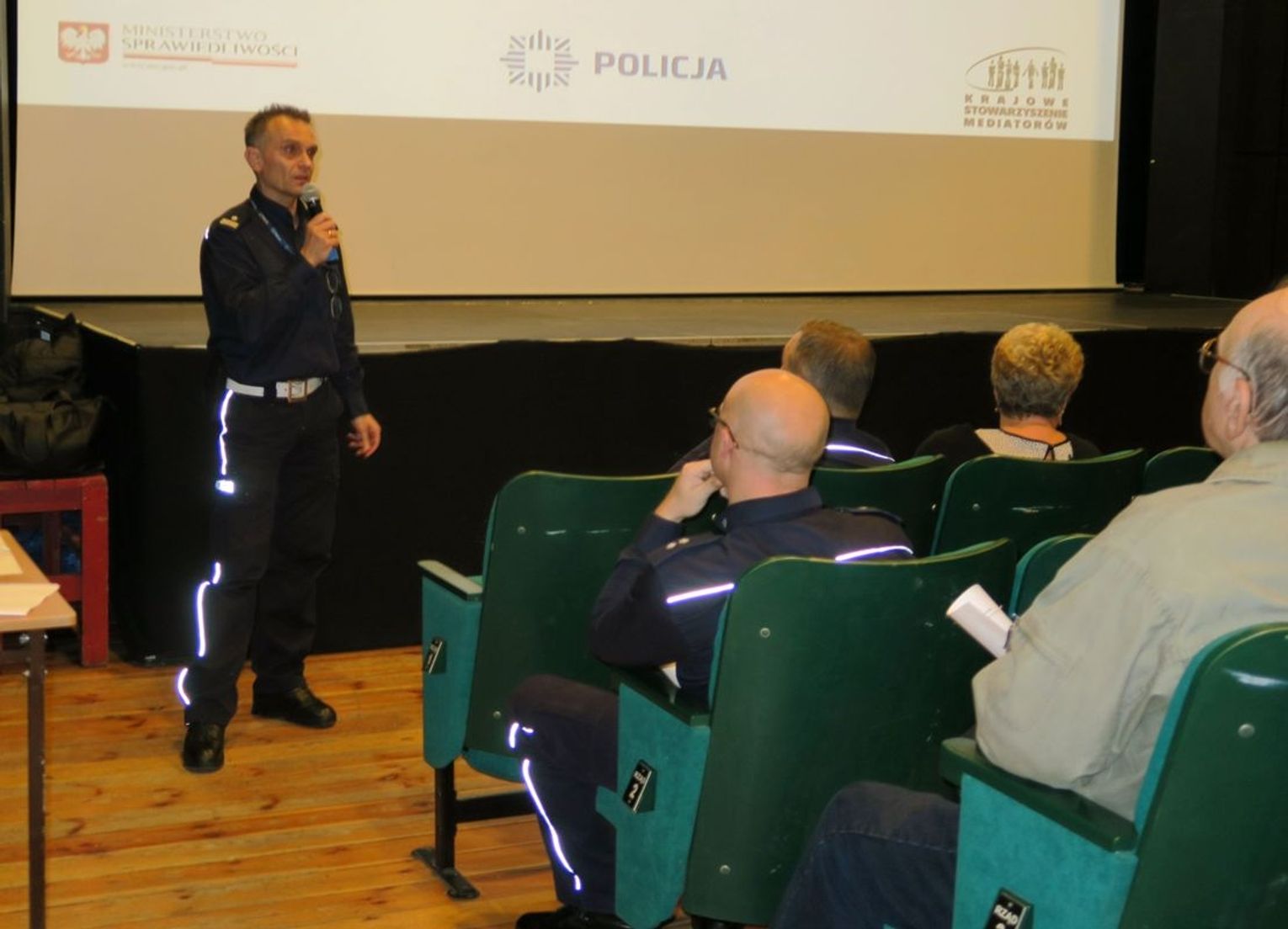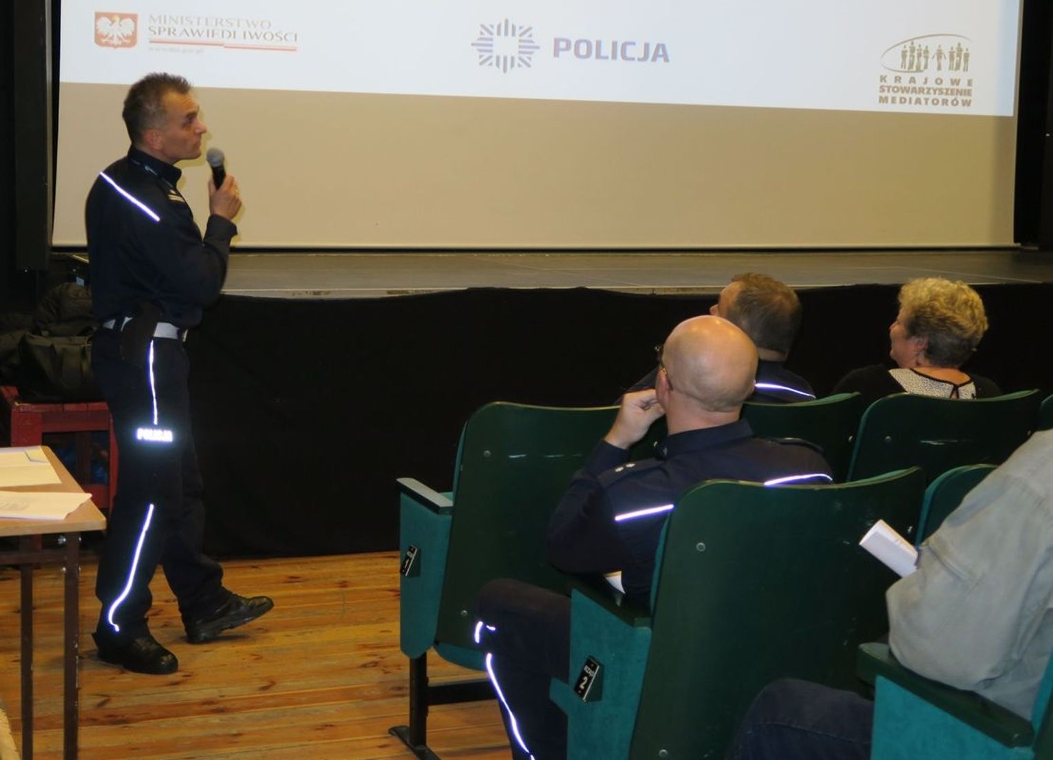 Mediacje w sprawach karnych przedstawił podkom. Radosław Purtak, naczelnik wydziału kryminalnego.