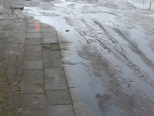 -Pomiędzy tymi blokami pan Namieciński wjeżdża do swojego domu. Od wielu lat parkujemy samochody po tej właśnie stronie drogi. Jak widać, jest przejazd, miejsce dla karetki pogotowia czy chociażby straży pożarnej. Stan drogi, jak można dostrzec, jest masakryczny w szczególności kiedy popada deszcz czy jak teraz są roztopy. Burmistrz nie ma na co pieniędzy wydawać gminnych pieniędzy, tylko na niepotrzebne znaki, których nigdy tutaj nie było?! – mówią poirytowani mieszkańcy.
