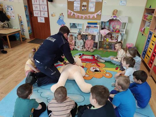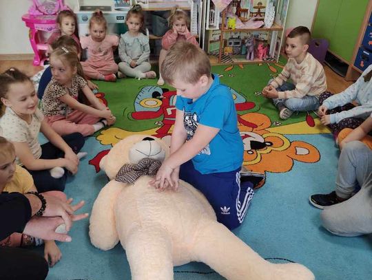 Wszystkie dzieci aktywnie uczestniczyły w zajęciach, chcąc doskonalić swoje umiejętności udzielania pierwszej pomocy. To świetne podejście, ponieważ nauka przez zabawę zwiększa motywację dzieci do uczenia się i utrwalenia przekazywanych informacji.