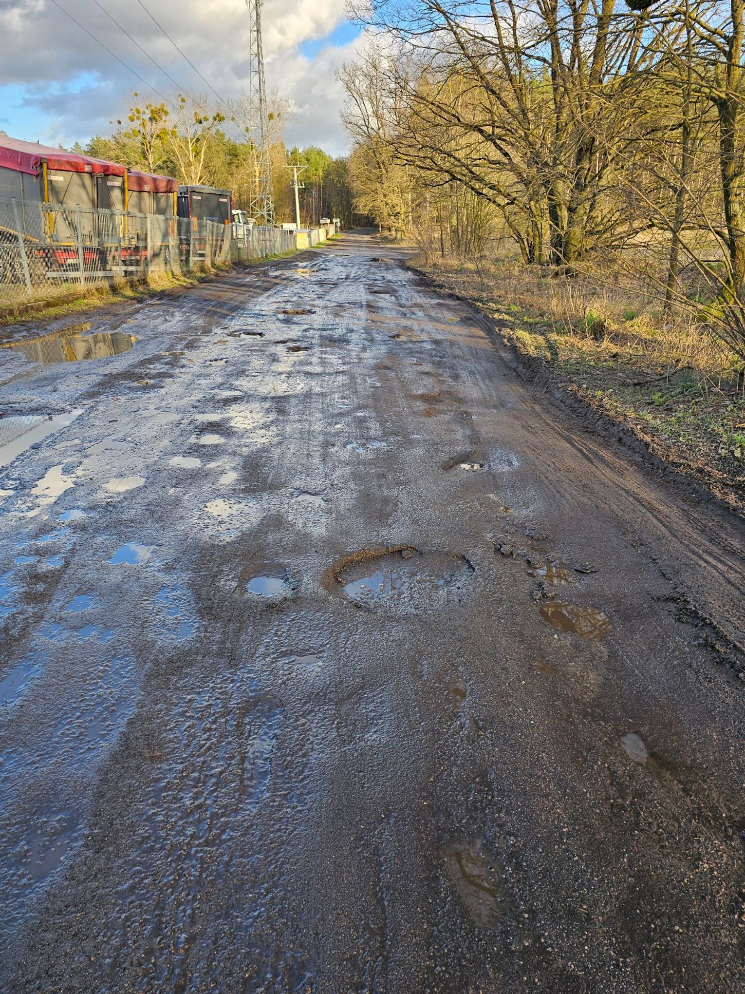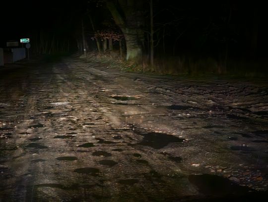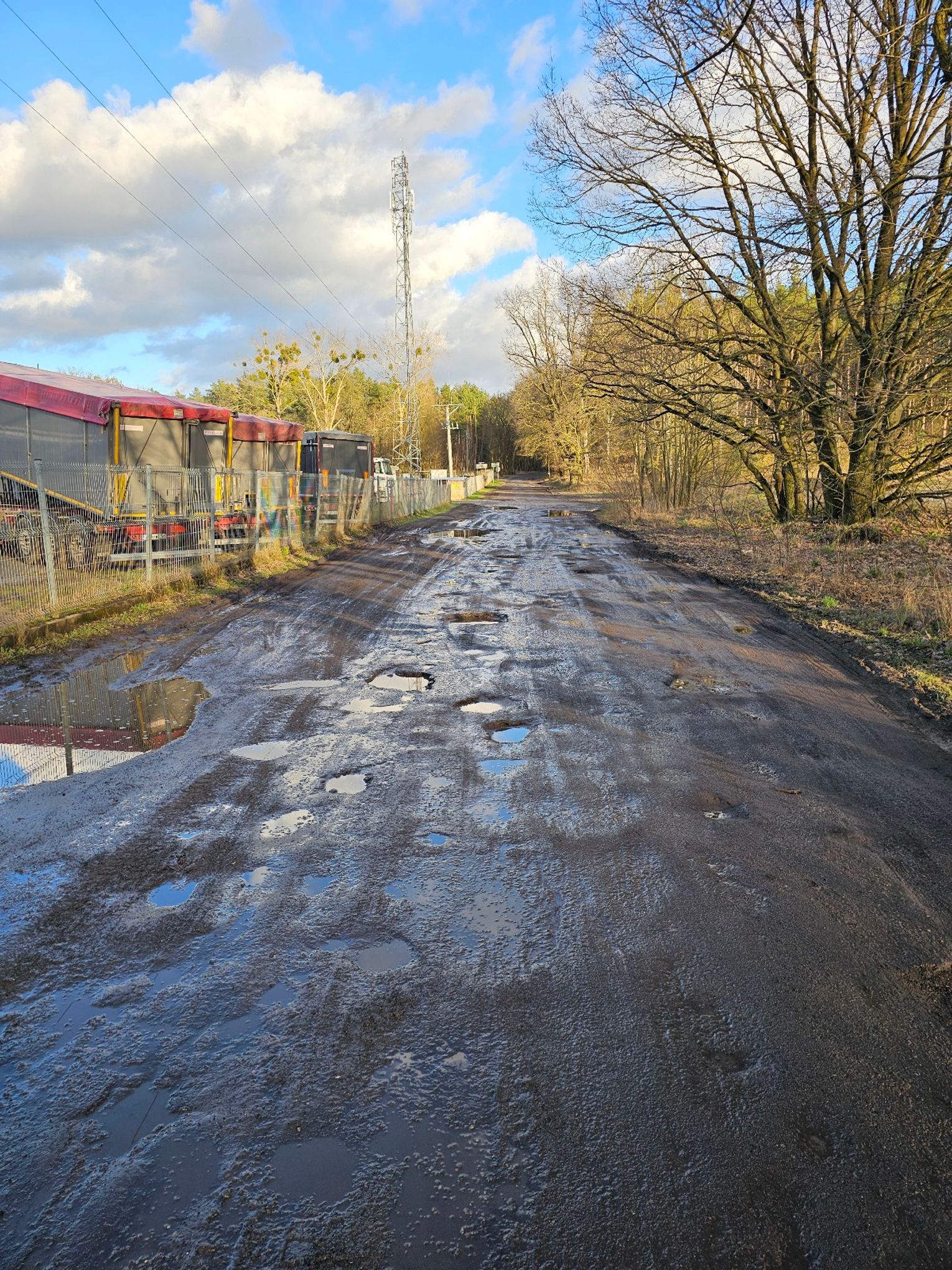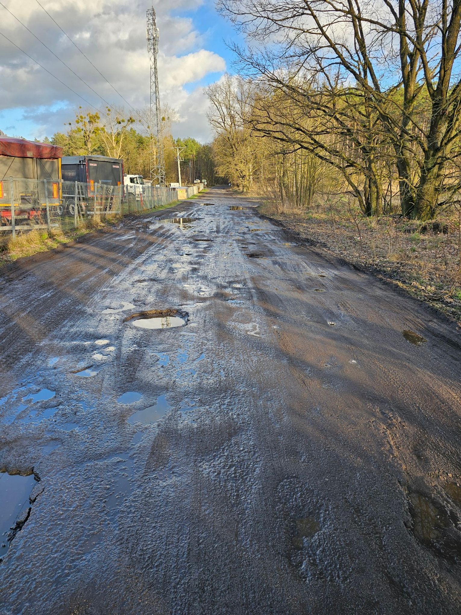 To trakt albo dukt leśny, a nie droga. By przejechać ten odcinek to tylko slalomem po poboczach które i ta są już rozjeżdżone zdjęcia. Stan zmienia się z doby na dobę jadąc w jedną stronę a powrót tą samą drogą, to już wybór innej opcji przejazdu. Zamieściłem również zdjęcia w nocy każda kałuża to dziura. To takie „Wilcze doły” bo nie wiesz czy pod tą