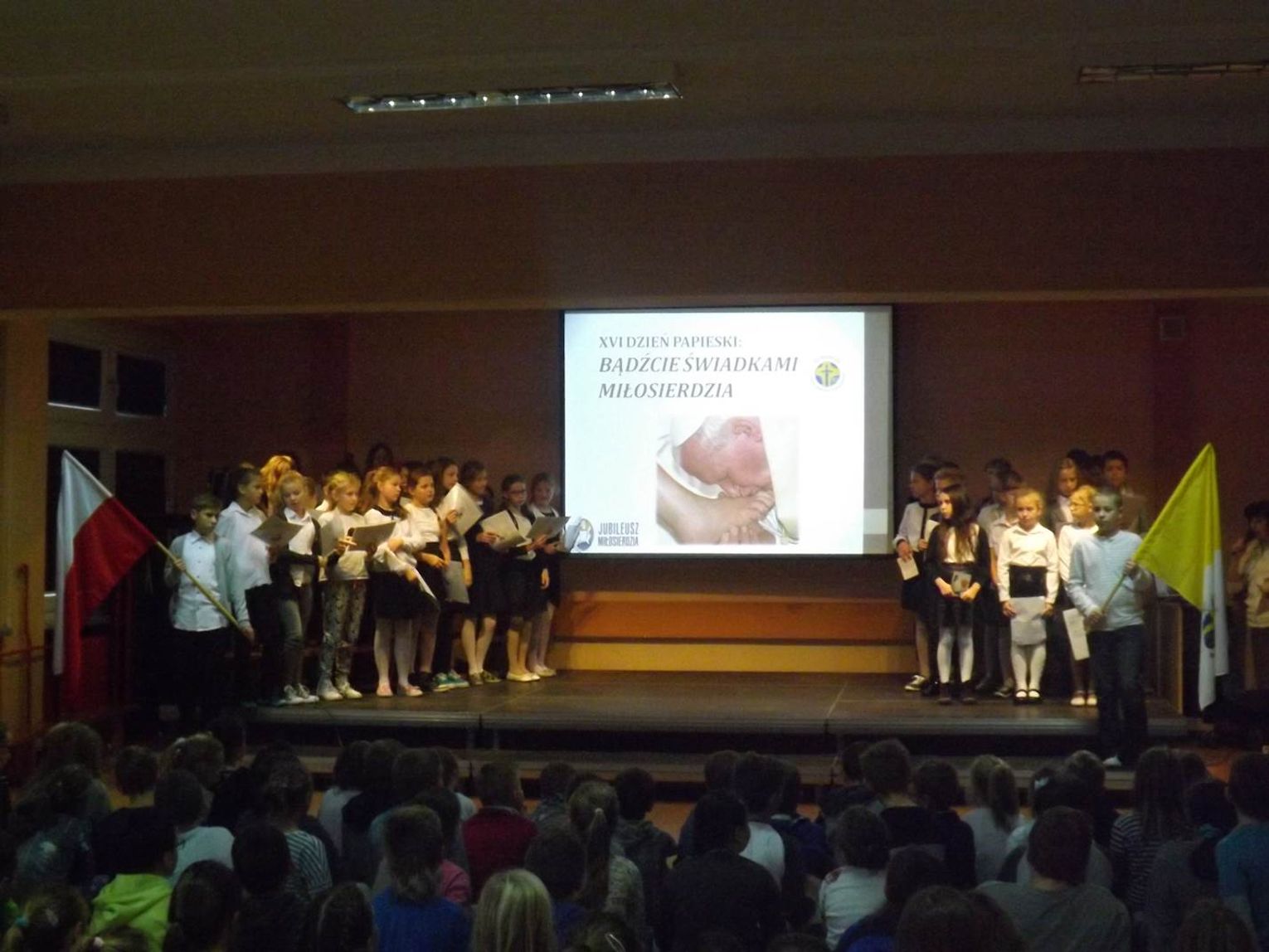 Społeczność Szkoły Podstawowej nr 2 w Chojnie wyraziła swą wdzięczność i jedność duchową z Ojcem Świętym, obchodząc XVI Dzień Papieski „Bądźcie świadkami miłosierdzia”. Uczniowie mieli możliwość uczestnictwa w spotkaniu, podczas którego ich koledzy, pod opieką pań A. Słodkowskiej, M. Rebelki i M. Sakowskiej przedstawili montaż słowno-muzyczny.