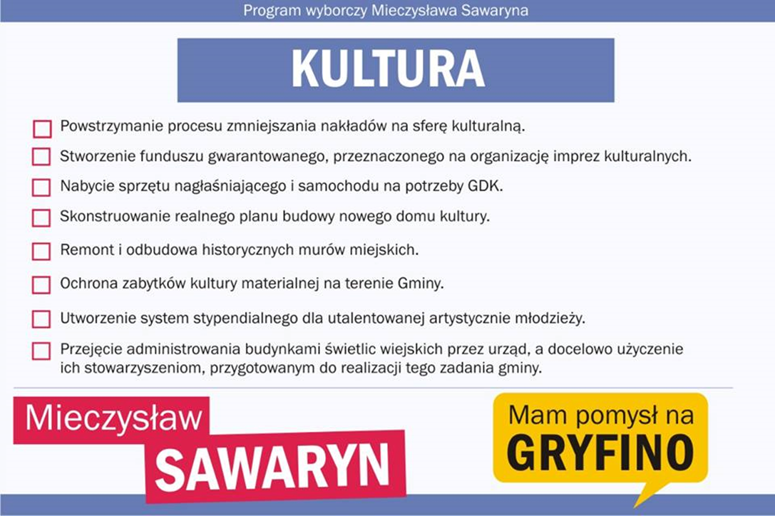 | Stworzenie funduszu gwarantowanego, przeznaczonego na organizację imprez kulturalnych | Nie | Mieszkańcy miło wspominają dawne Dni Gryfina |