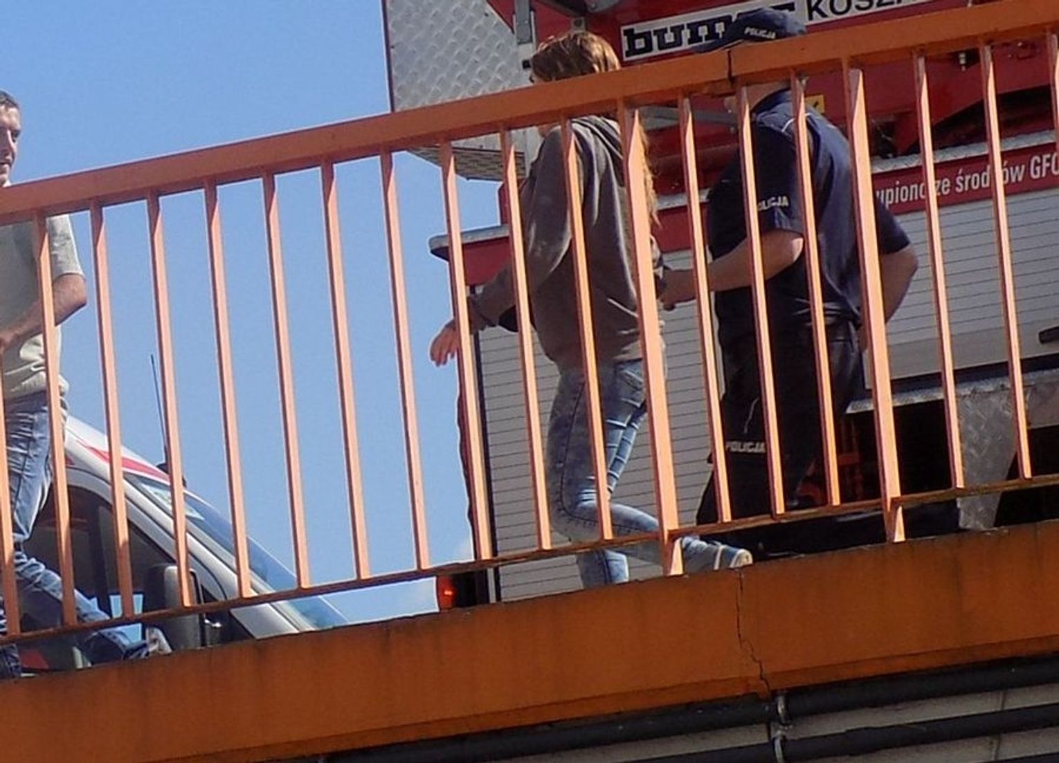 Rozciągnięto na moście specjalny skokochron. W pobliżu po rzece pływała zaalarmowana straż wodna. Wreszcie ktoś z obserwujących całe zdarzenie krzyknął: - Ty! Masz poduszkę! Skacz!