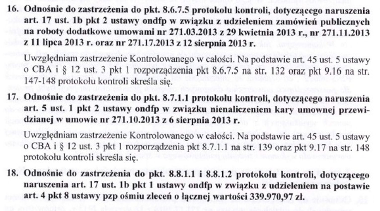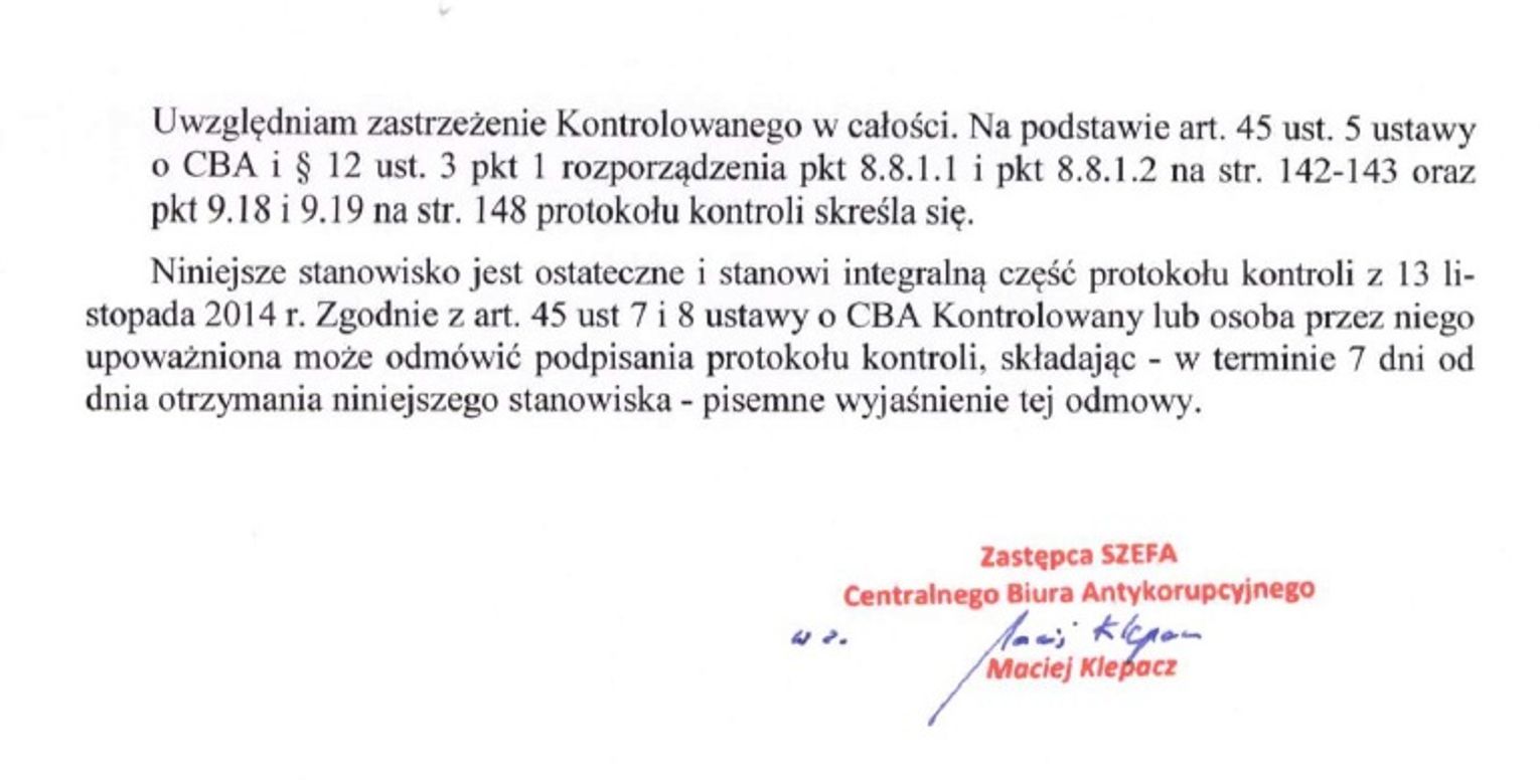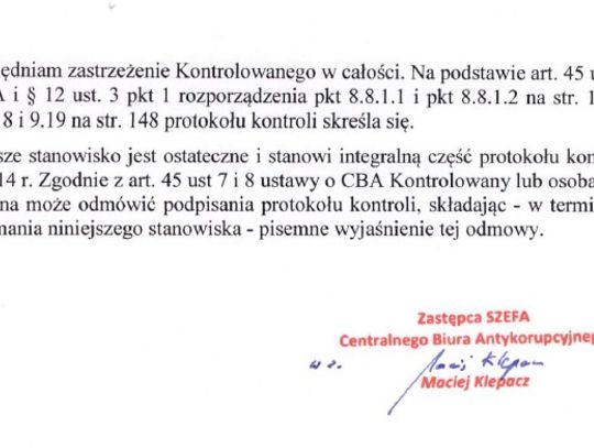 Przypomnijmy, że o sprawie napisaliśmy jako pierwsi już tydzień temu. Pisaliśmy, iż do zarzutów CBA odnosił się wraz z urzędnikami Henryk Piłat już w listopadzie 2014 r. Część tych wyjaśnień została przez CBA uwzględniona. Teraz CBA może skierować sprawę do prokuratury.