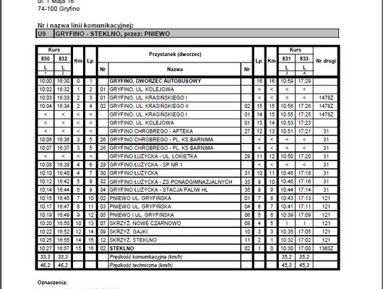 -Zrobiłam rozeznanie w sprawie tabliczek z rozkładem jazdy autobusów – informuje nas sekretarz Ewa Sznajder. -Pracownik UMiG osobiście sprawdził i potwierdził, że w centrum Gryfina jest tabliczka informująca o kursach autobusów do Steklna. W rozmowie z dyrektorem ds. przewozów PKS w Szczecinie Sp. z o.o. ustalono, że do końca tygodnia zostanie zrobiony przegląd tabliczek na wszystkich przystankach w Gryfinie. Nadmieniam, że na przystankach nie ma osobnych tabliczek dla linii Gryfino-Steklno, natomiast w rozkładzie jest umieszczony kierunek "Steklno, plaża". W załączeniu przesyłam rozkład jazdy.