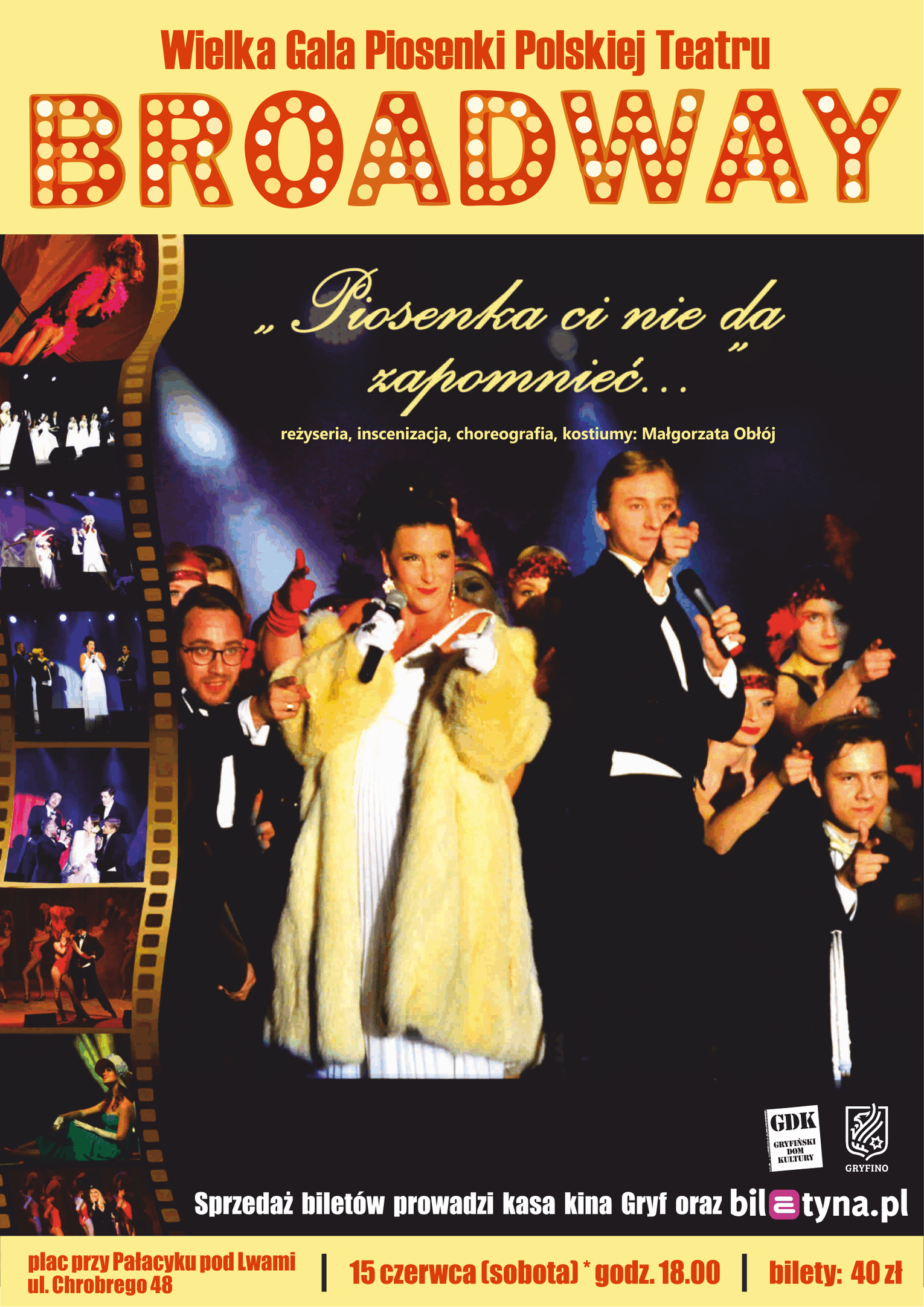 W sobotę, 15 czerwca 2024 Gryfiński Dom Kultury zaprasza na Wielką Galę Piosenki Polskiej w wykonaniu Teatru Broadway.