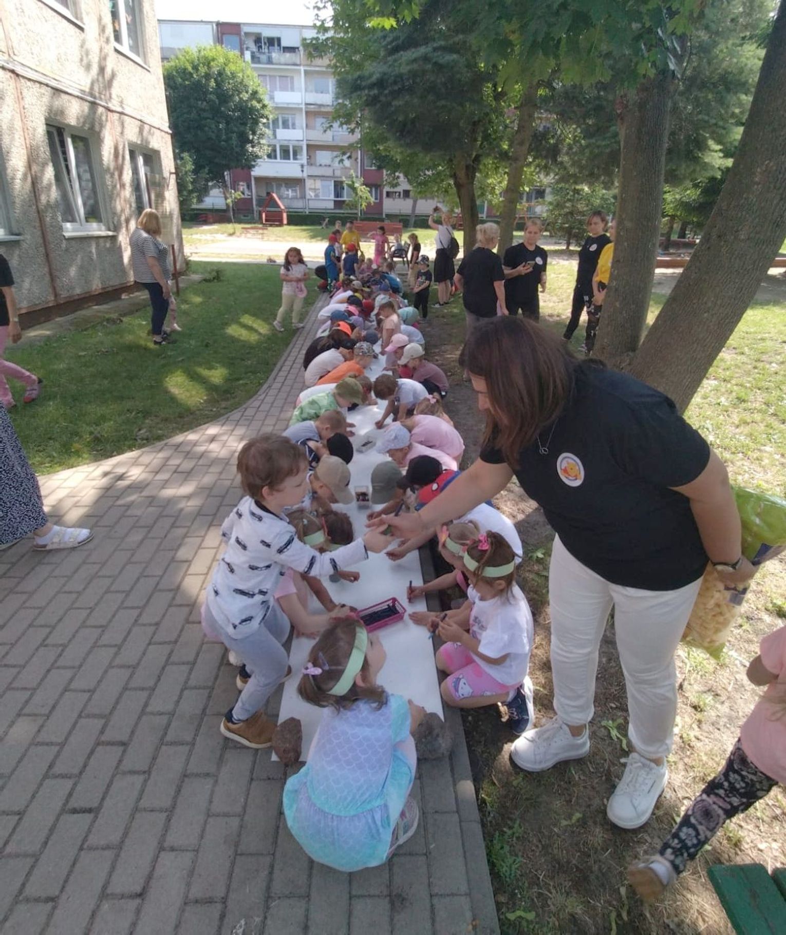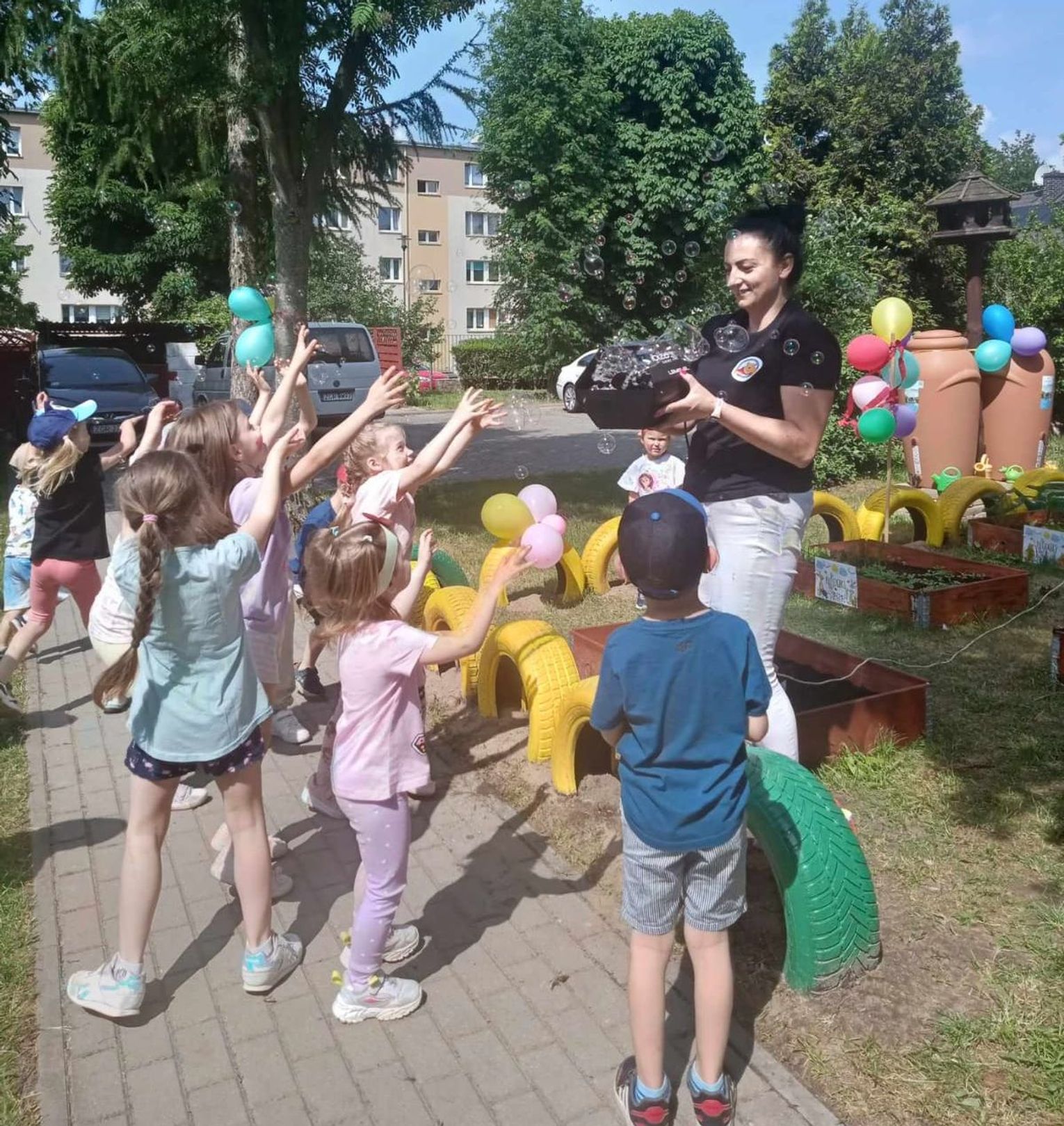 Po oficjalnej części programu dzieci zaśpiewały wspólnie piosenkę i wzięły udział w twórczych zajęciach plastycznych. Zwieńczeniem uroczystości była świetna zabawa przy akompaniamencie muzyki i bańkach mydlanych.