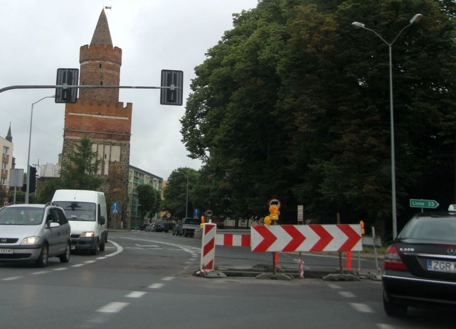 Jedni wymijali przeszkodę z lewej, inni kierowcy z prawej. Wielki problem sprawił dziś na skrzyżowaniu ulicy Chrobrego z Armii Krajowej w Gryfinie płotek z dziurą pośrodku. Cud, że się nic nie stało.
