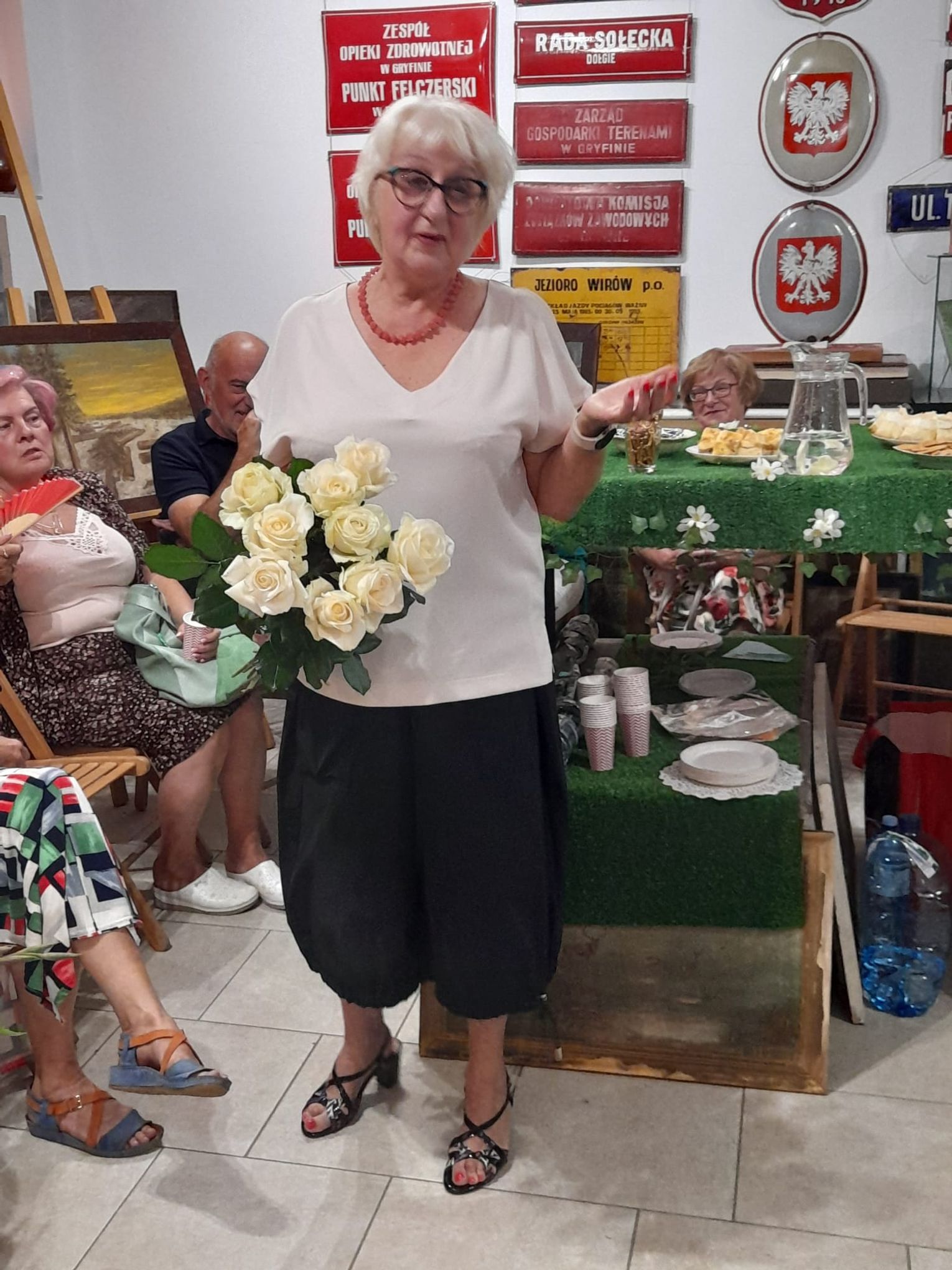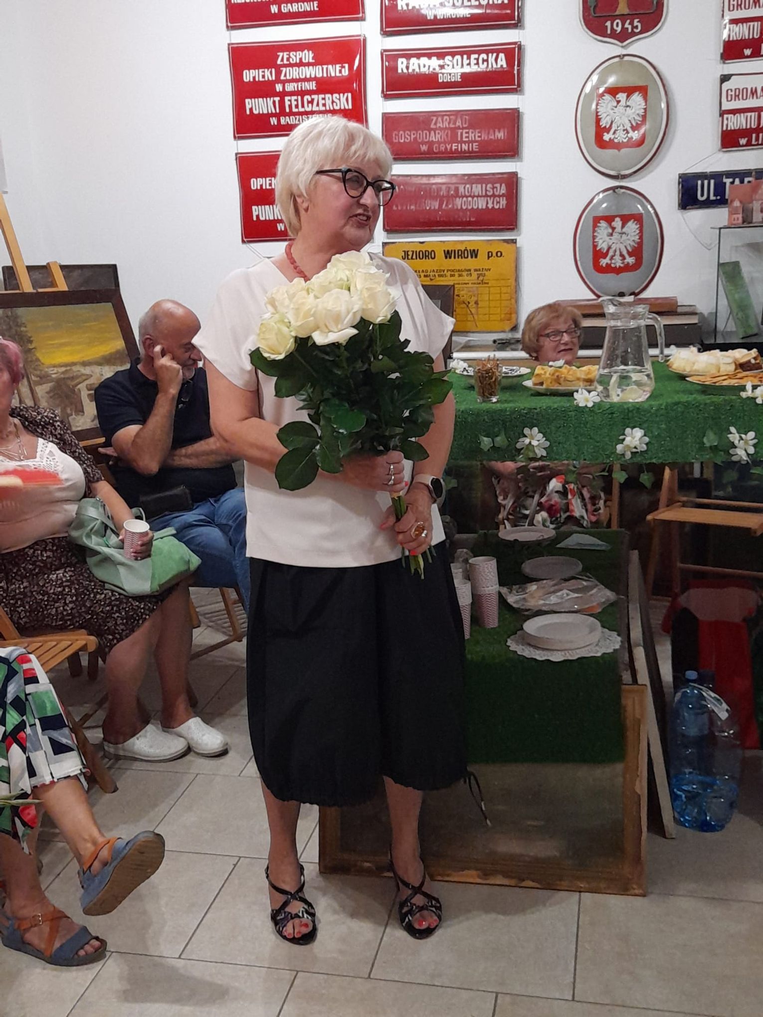 - Zarząd i członkowie Towarzystwa Miłośników Historii Ziemi Gryfińskiej dziękują Joannie Rossie za przekazanie na rzecz Stowarzyszenia obrazów namalowanych na wystawę "Greifenhagen-Gryfino dawniej i dziś" z okazji 770. urodzin naszego miasta. W imieniu członków TMHZG oraz pani Joanny dziękuję wszystkim za przybycie, a przyszło naprawdę bardzo dużo ludzi. Nie sposób było pomieścić się w jednej sali. Dziękujemy Januszowi Kulce za przekazane kałamarze i stare butelki. Podziękowania należą się także naszej koleżance Ani Orłowskiej za darowiznę materialną na rzecz naszego Towarzystwa w postaci nietypowego nakrycia stołu i dekoracji na stół. A pani Joannie Rossie życzymy rozwoju swojego talentu i dziękujemy za godne reprezentowanie naszego miasta - przekazuje za naszym pośrednictwem Katarzyna Figas, przewodnicząca Towarzystwa Miłośników Historii Ziemi Gryfińskiej.