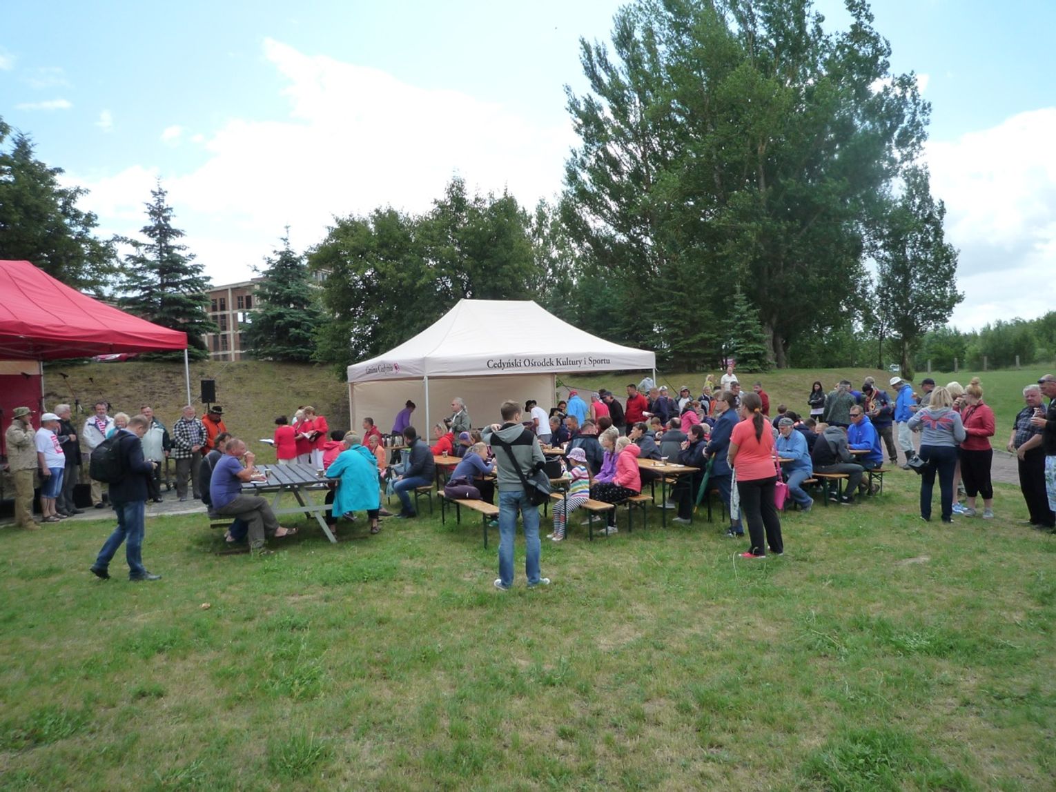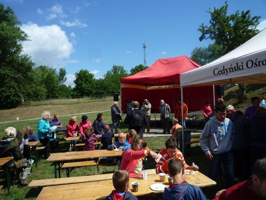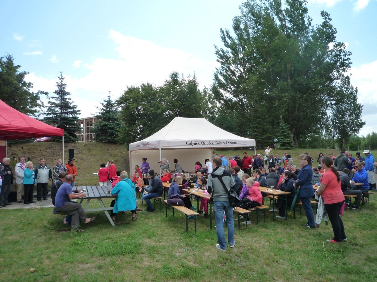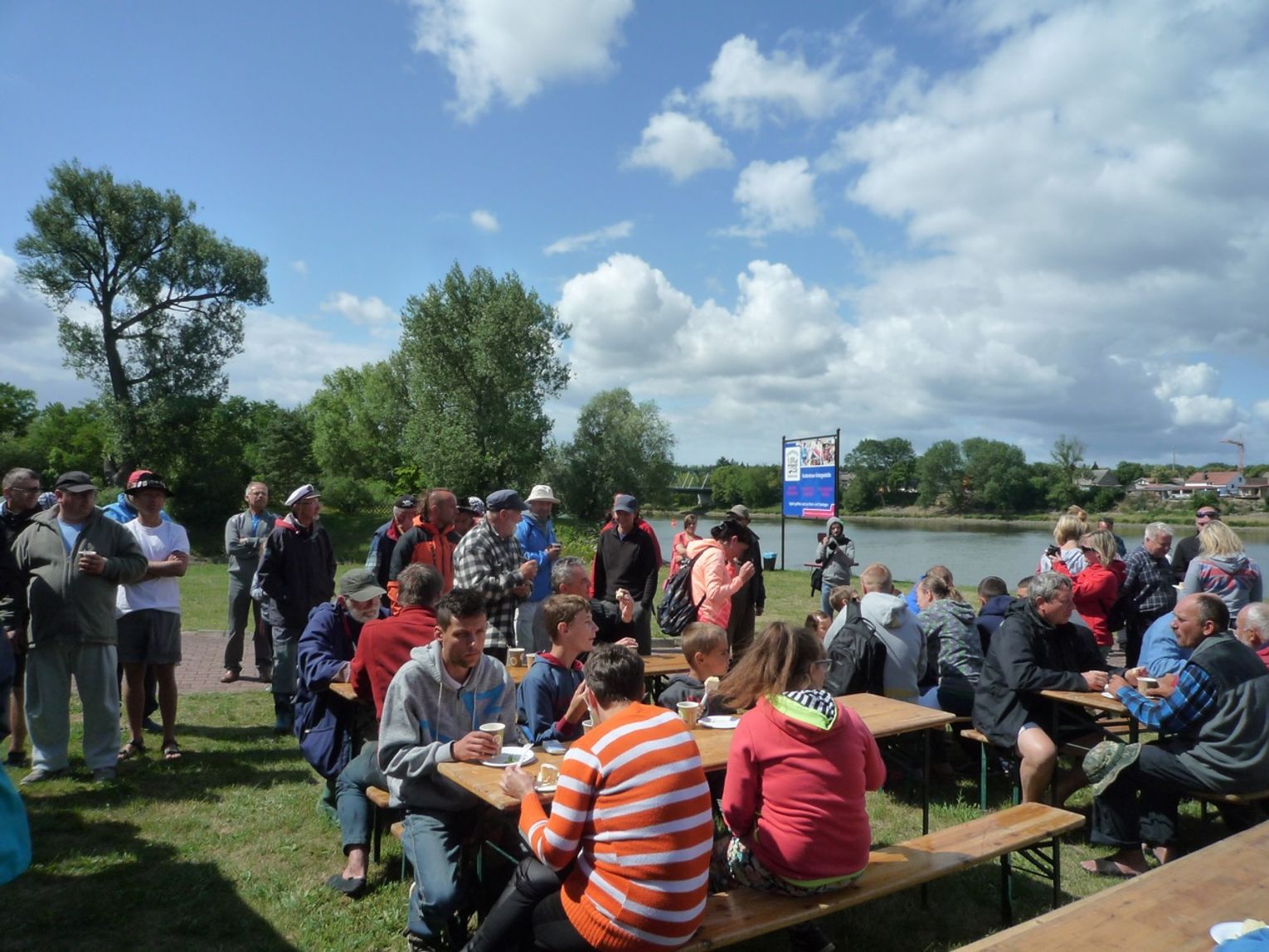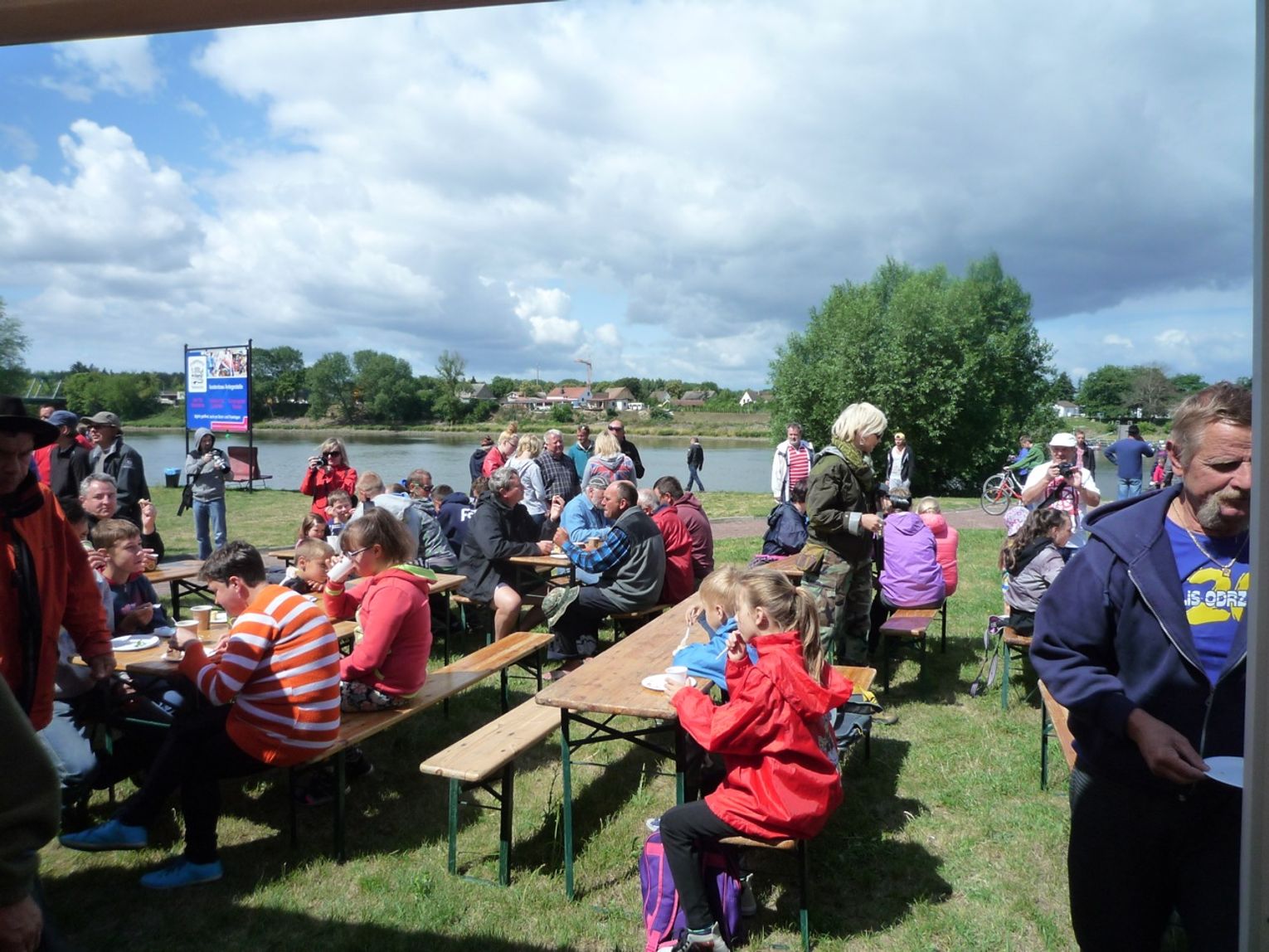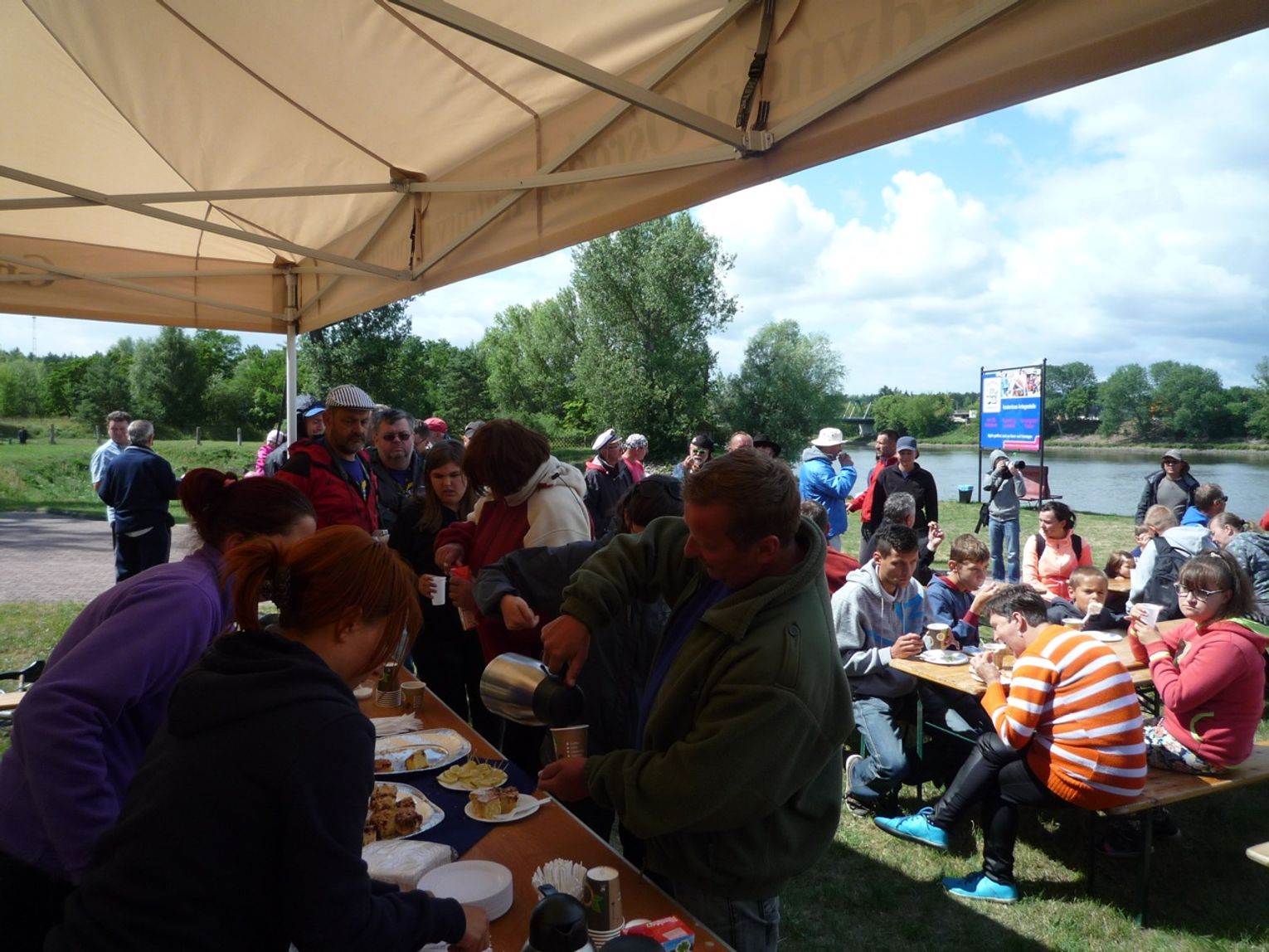 COKiS przygotował małą estradę. Goście chętnie skorzystali z poczęstunku. Kilkadziesięcioro gości bawiło się na brzegu Odry przy piosenkach śpiewanych przez zespół Kalimera. Za gościnę dziękowała Elżbieta Marszałek, wiceprezes Ligi Morskiej i Rzecznej, organizator XX Flisu Odrzańskiego.