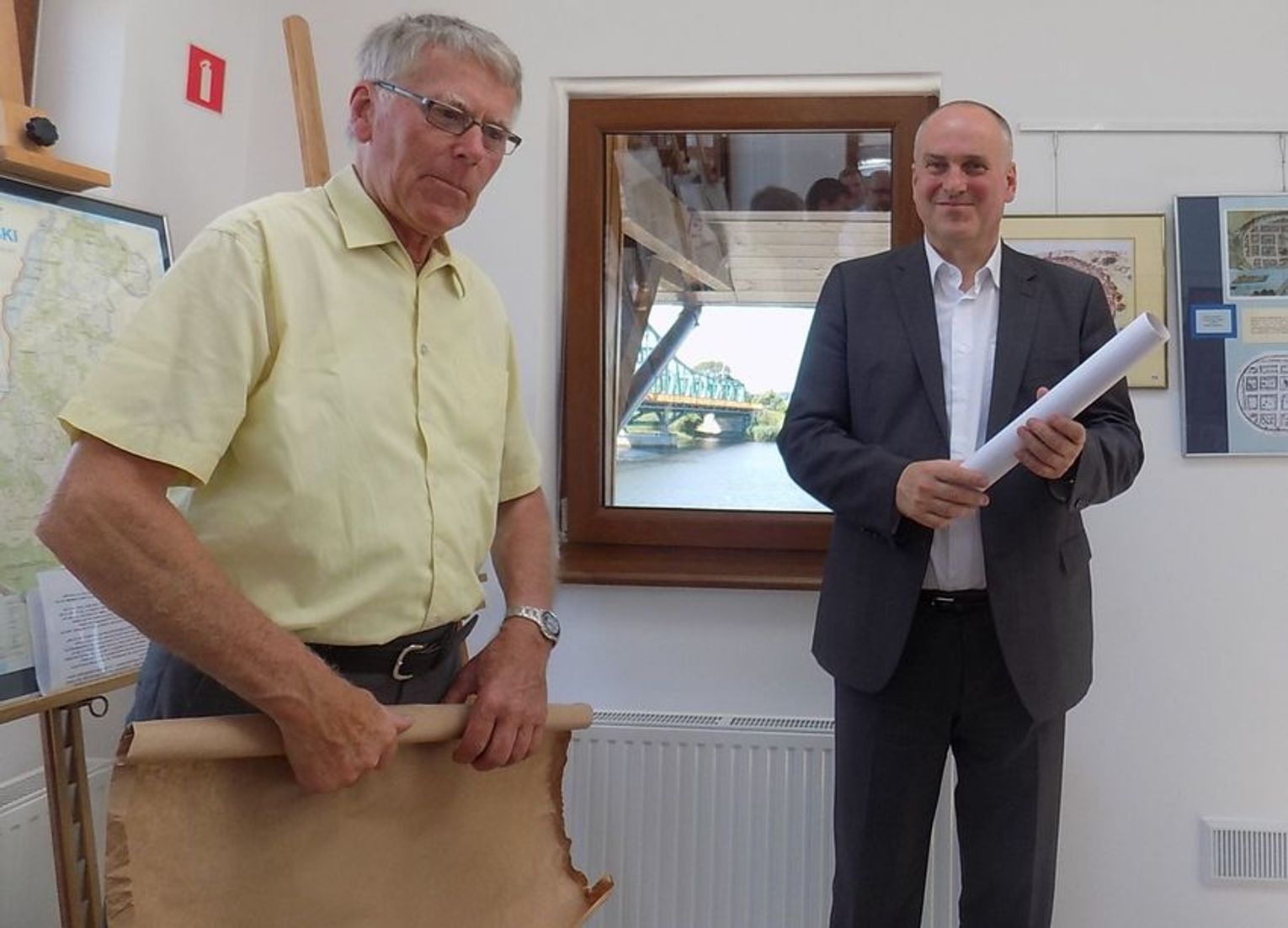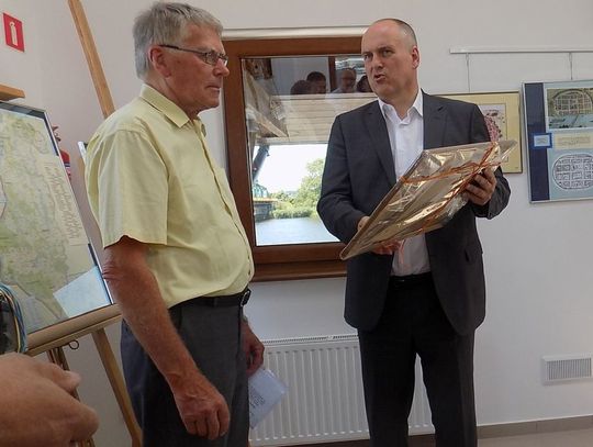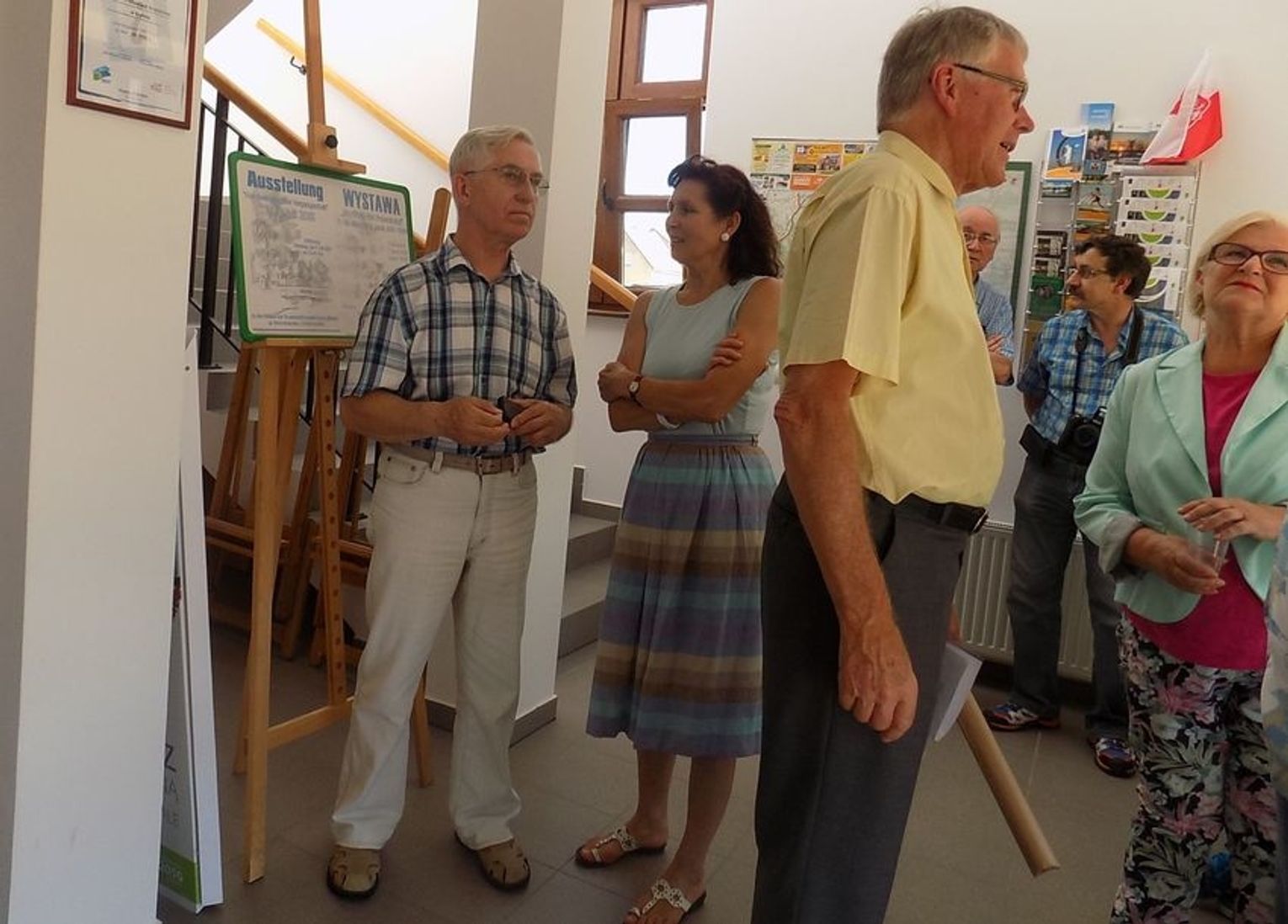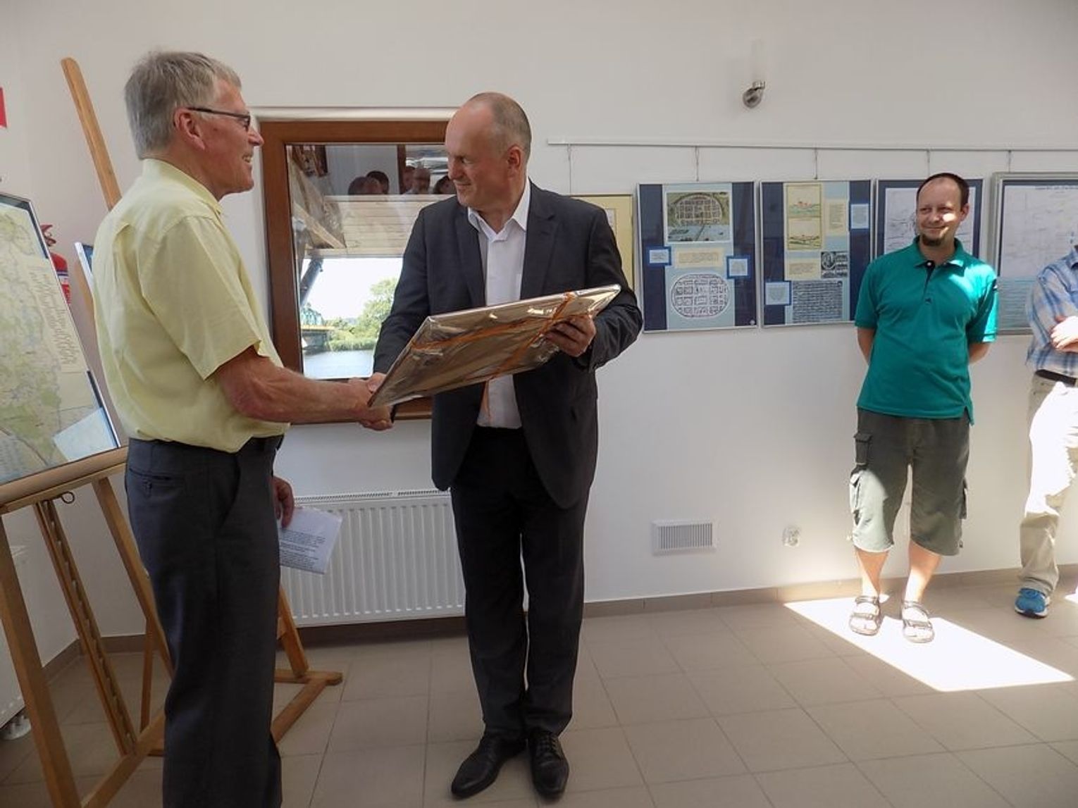 Na wtorkowy wernisaż przybyło sporo znanych osób. Burmistrz Mieczysław Sawaryn w krótkich słowach podziękował za współpracę i wręczył pamiątkę przedstawiającą nieistniejący już Dom Towarowy. W zamian otrzymał kolorową kopię mapy powiatu gryfińskiego z 1924 roku.