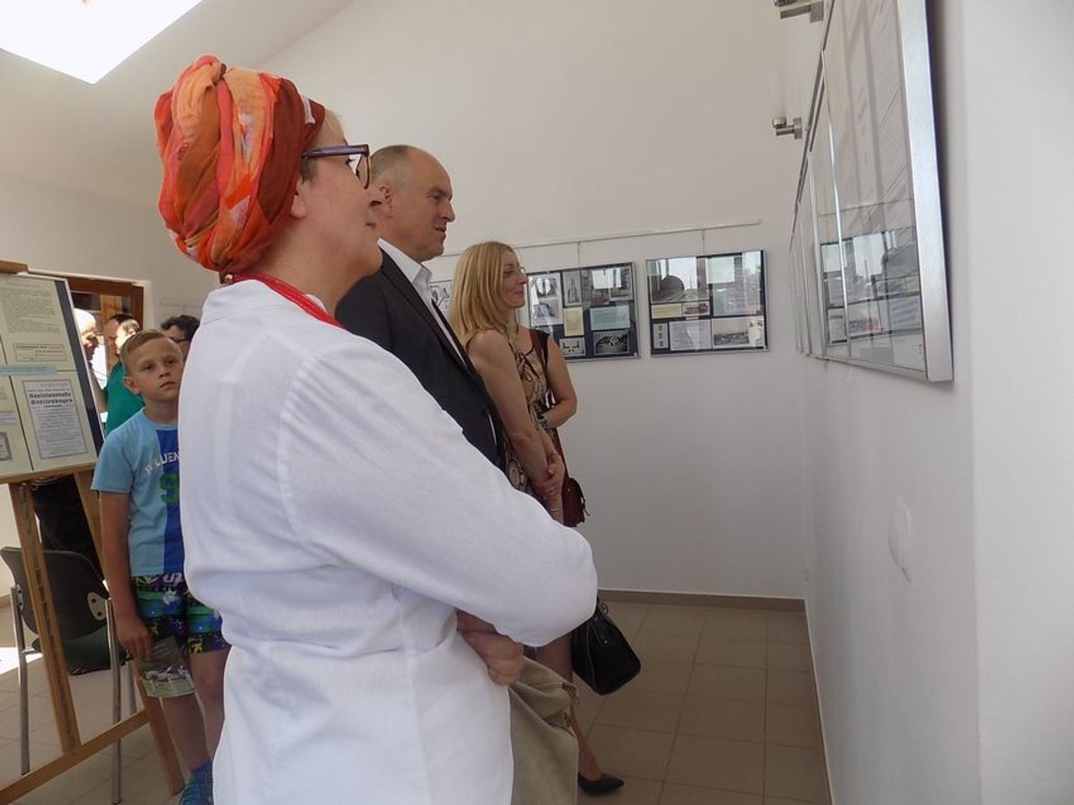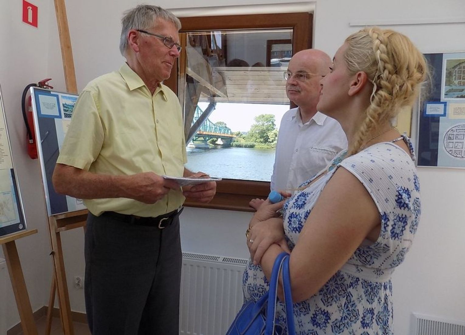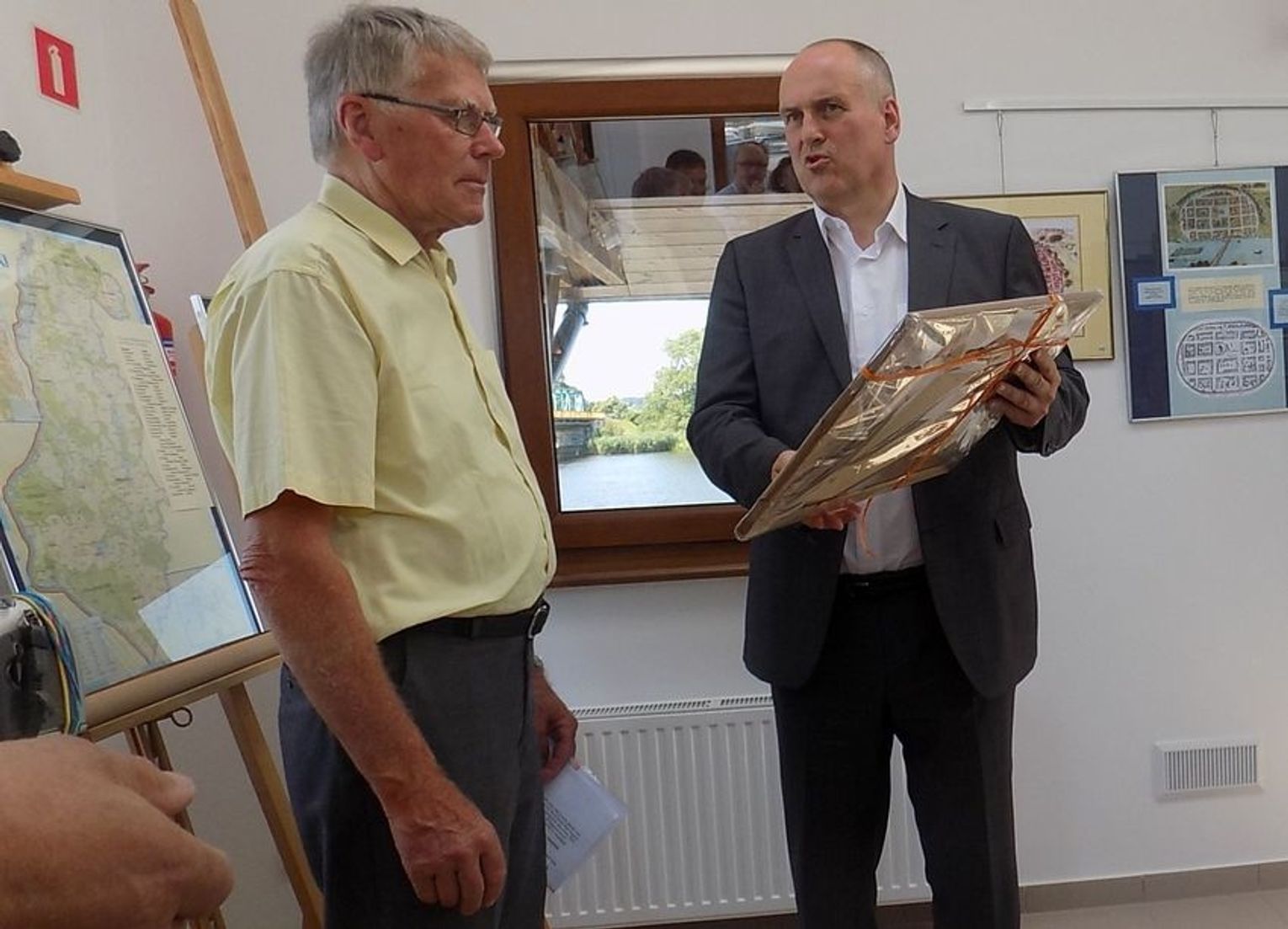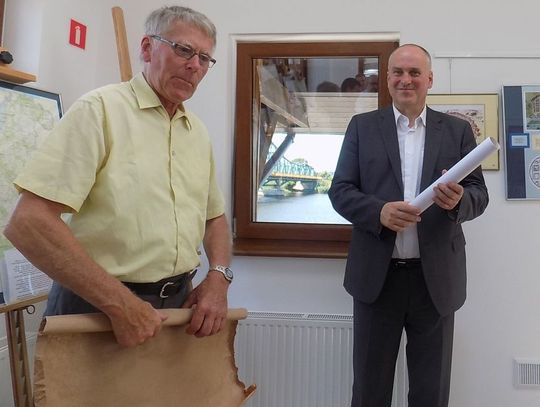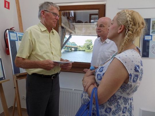 Na wtorkowy wernisaż przybyło sporo znanych osób. Burmistrz Mieczysław Sawaryn w krótkich słowach podziękował za współpracę i wręczył pamiątkę przedstawiającą nieistniejący już Dom Towarowy. W zamian otrzymał kolorową kopię mapy powiatu gryfińskiego z 1924 roku.