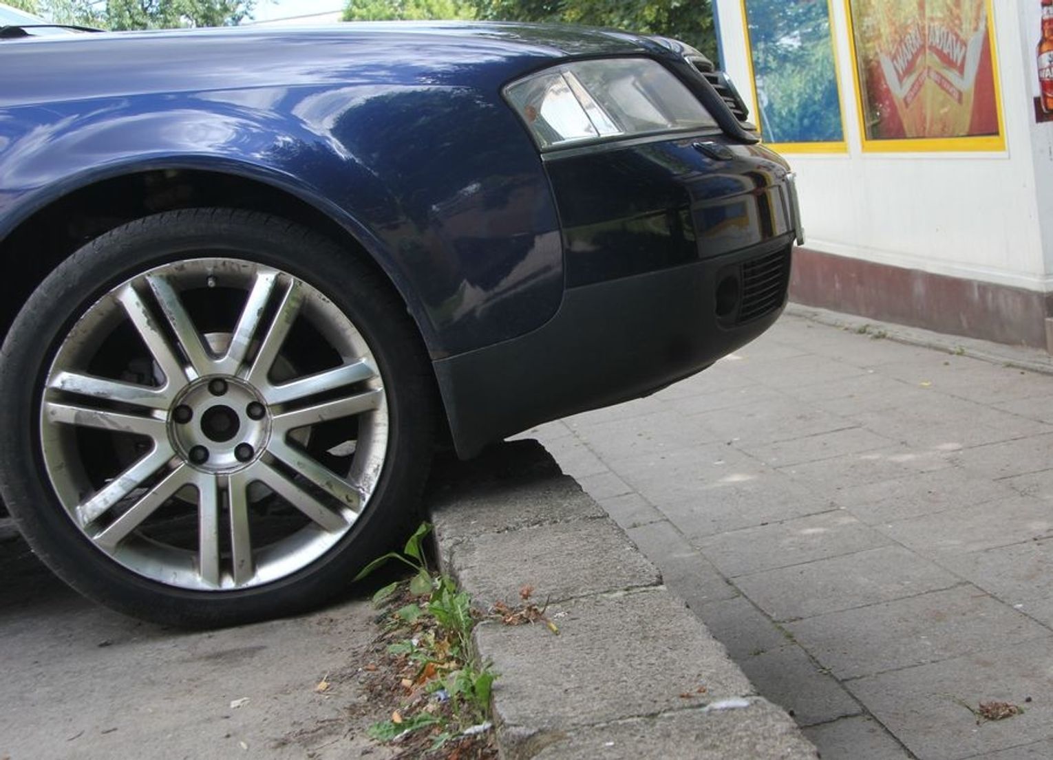 Czy zaparkowany samochód może przeszkadzać na wysokości torebki noszonej przez kobietę? Owszem, tak było dziś na ulicy 11 Listopada w Gryfinie. Mistrz kierownicy zaparkował na samej krawędzi. 2-3 centymetry dalej i samochód runąłby w dół…
