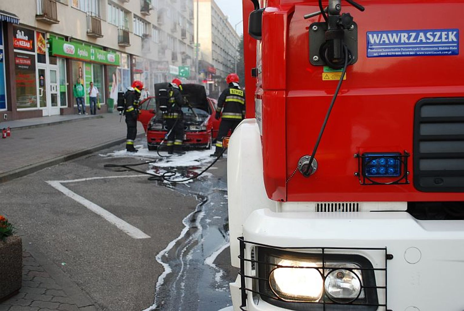 Pożar wybuchł w komorze silnika seata toledo zaparkowanego w Gryfinie. Na szczęście kierowca znajdował się na zewnątrz. Do zdarzenia doszło we wtorek, 30 czerwca o godzinie 6.