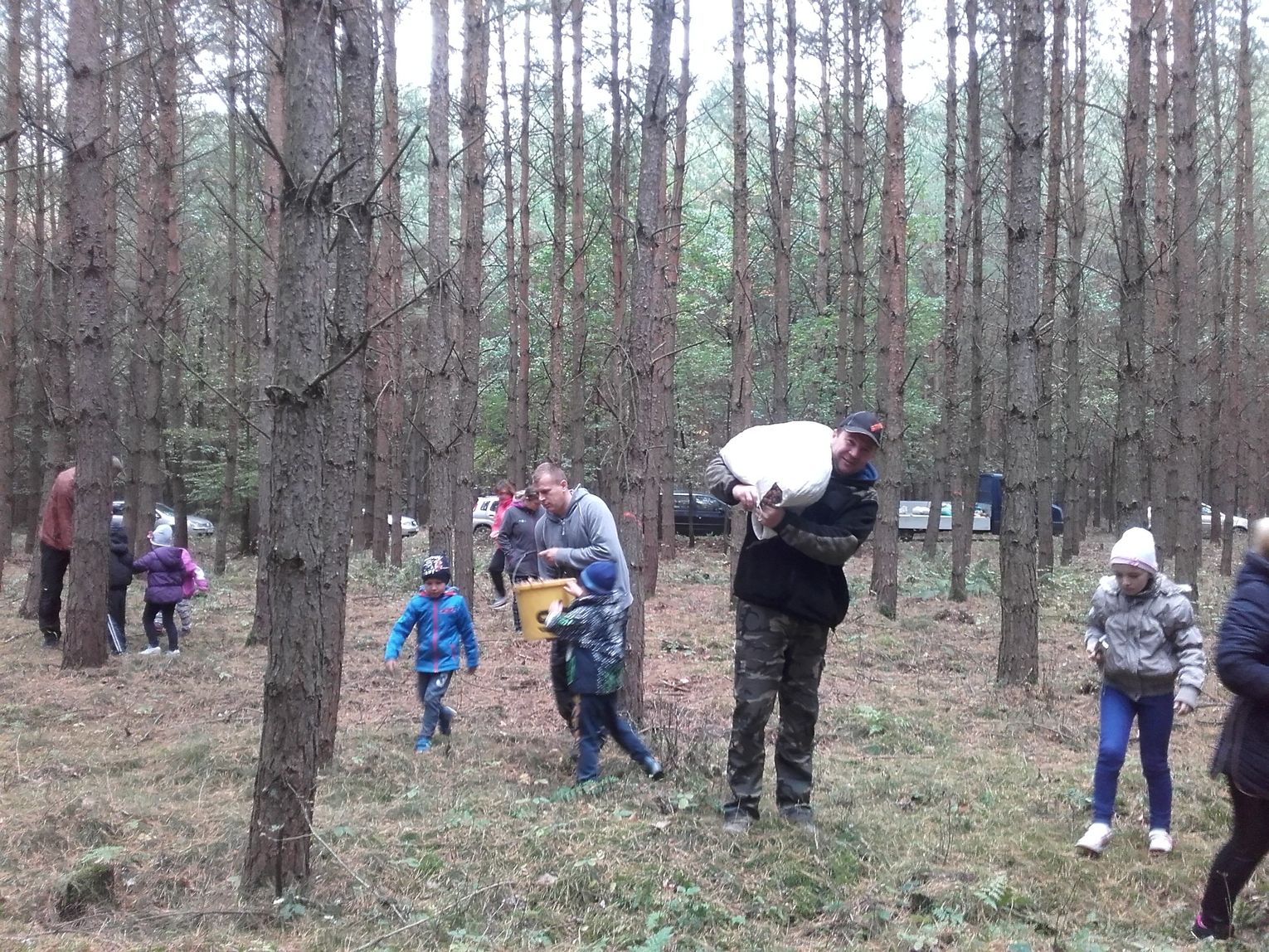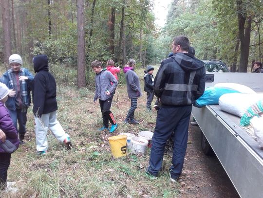 W ostatnią sobotę, 15 października 2016 r. grupa dzieci zgromadzonych przy świetlicach wiejskich w Borzymiu i Dołgich pod opieką pań opiekunek świetlic, członków stowarzyszenia SOKÓŁ oraz myśliwych Koła Łowieckiego ORLIK wybrała się do lasu. A cel wizyty był prosty - dostarczenie do lasu zebranych przez dzieci ponad 300 kg żołędzi.