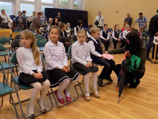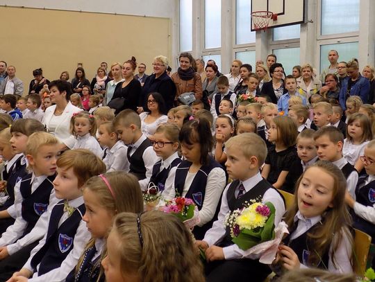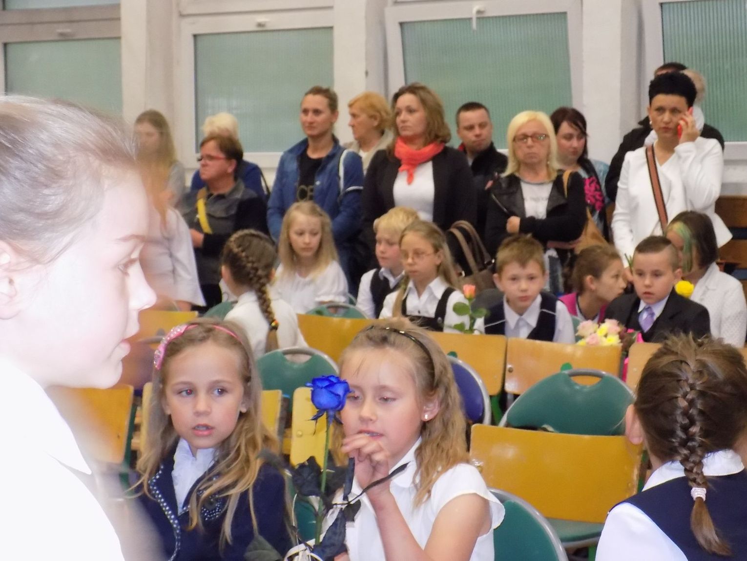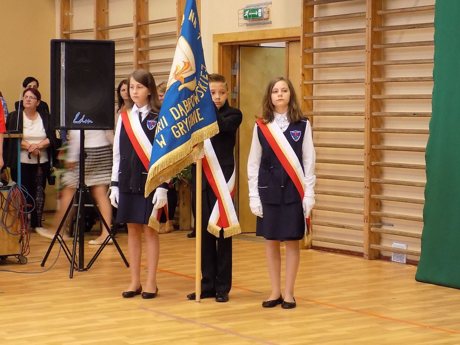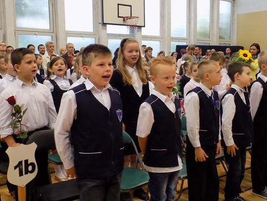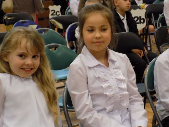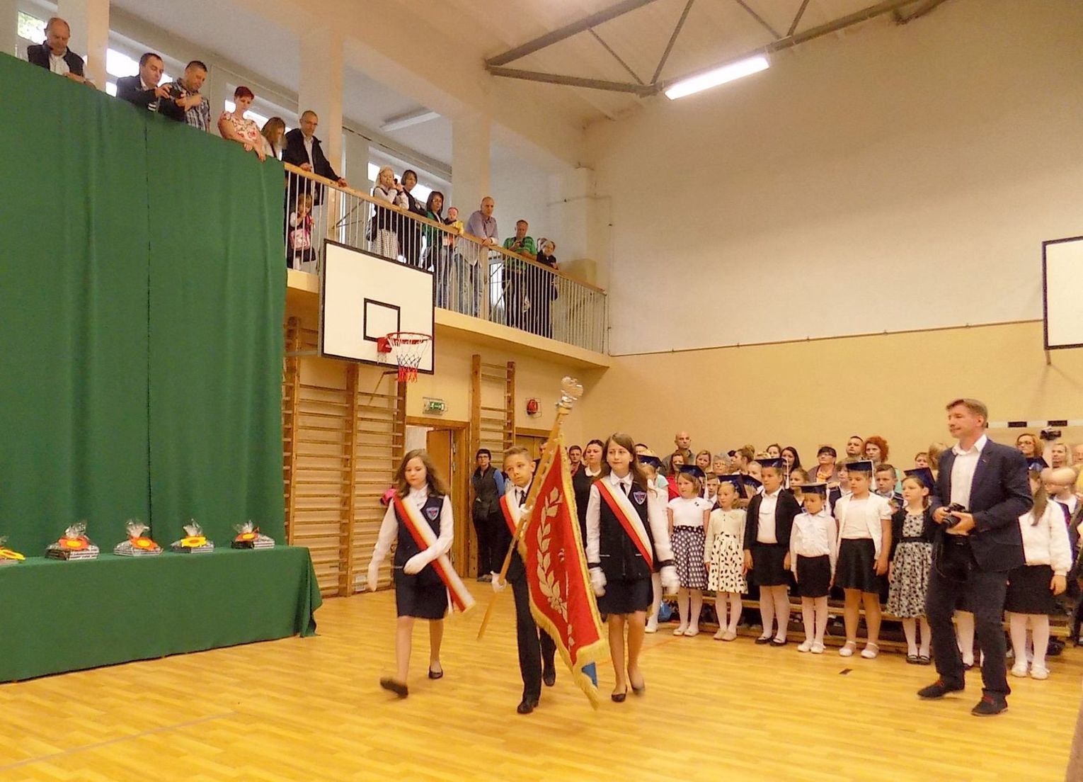 Uroczystość rozpoczęło wprowadzenie sztandaru i odśpiewanie hymnu. Niejednej osobie łza się w oku zakręciła, patrząc na te wszystkie buzie z takim przejęciem śpiewające słowa „Jeszcze Polska nie zginęła, póki my żyjemy”.