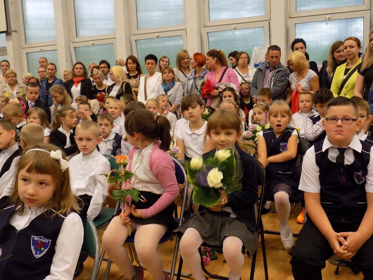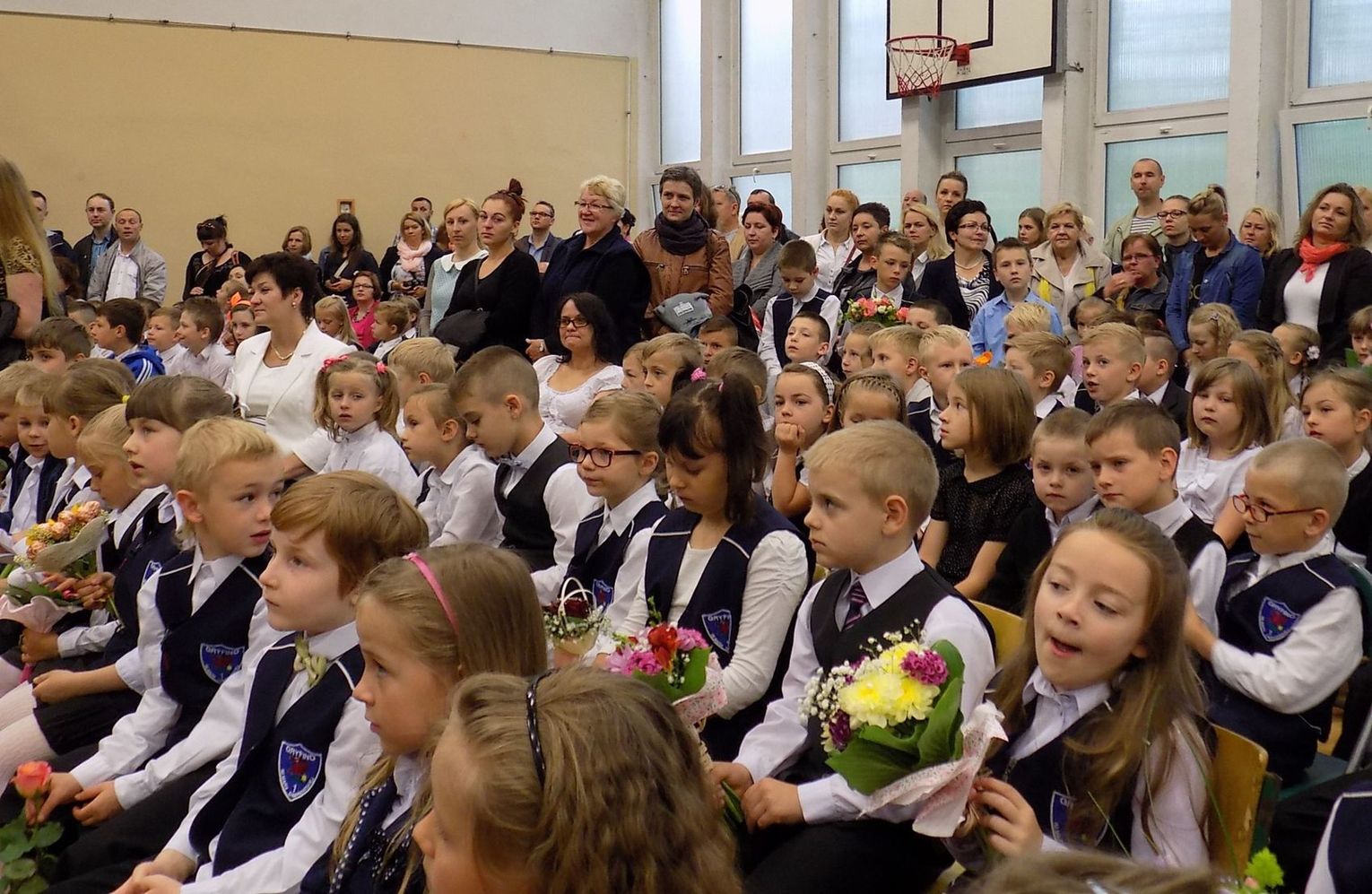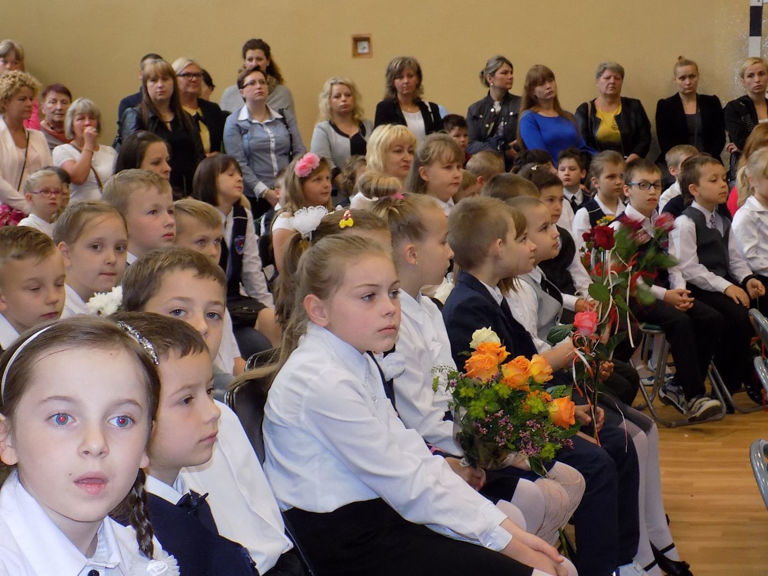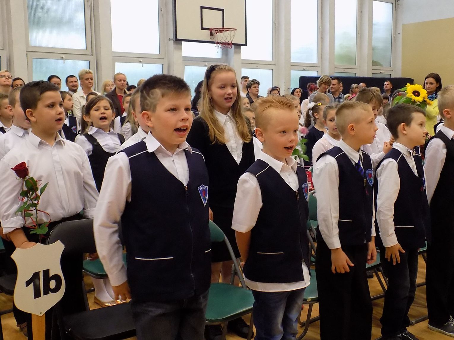 Uroczystość rozpoczęło wprowadzenie sztandaru i odśpiewanie hymnu. Niejednej osobie łza się w oku zakręciła, patrząc na te wszystkie buzie z takim przejęciem śpiewające słowa „Jeszcze Polska nie zginęła, póki my żyjemy”.