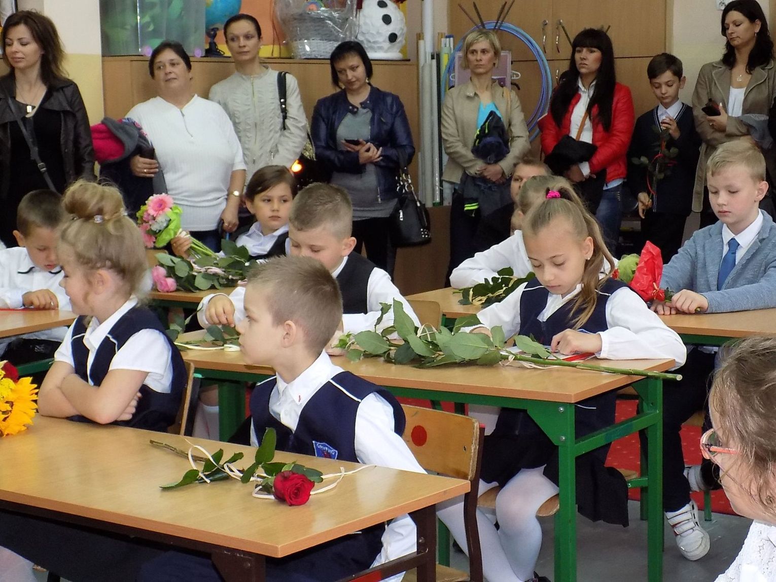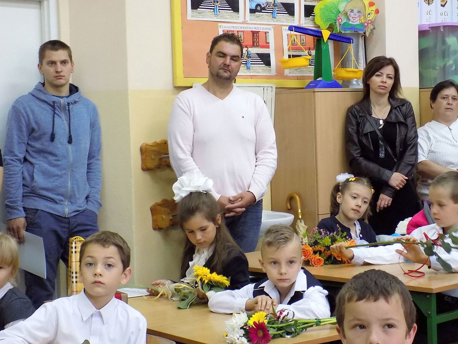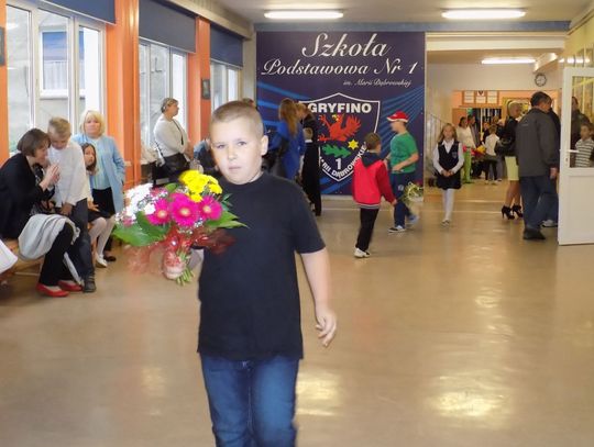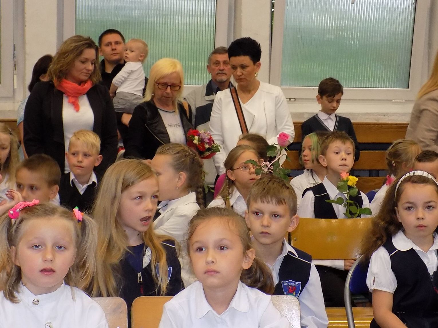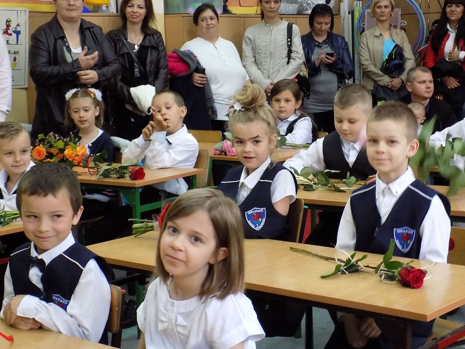 Uroczystość rozpoczęło wprowadzenie sztandaru i odśpiewanie hymnu. Niejednej osobie łza się w oku zakręciła, patrząc na te wszystkie buzie z takim przejęciem śpiewające słowa „Jeszcze Polska nie zginęła, póki my żyjemy”.