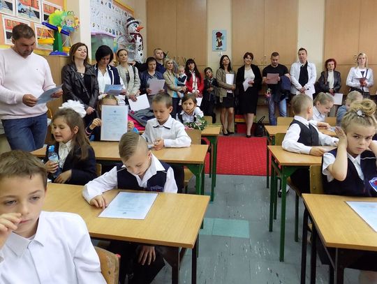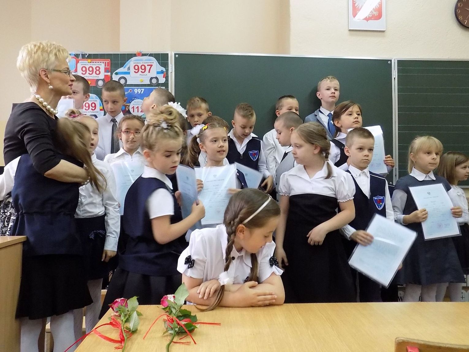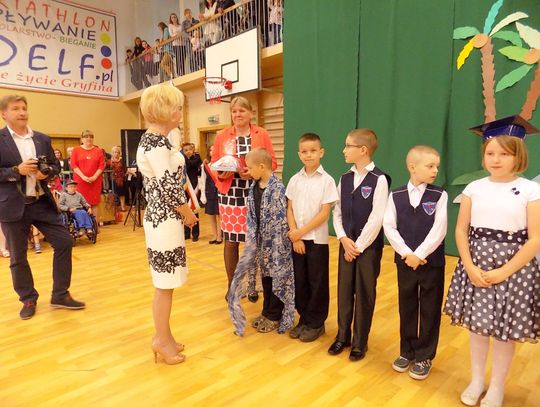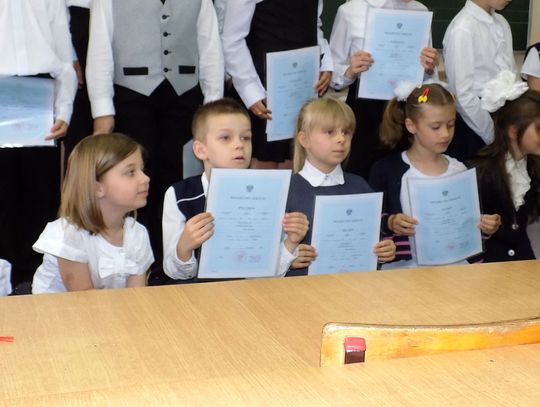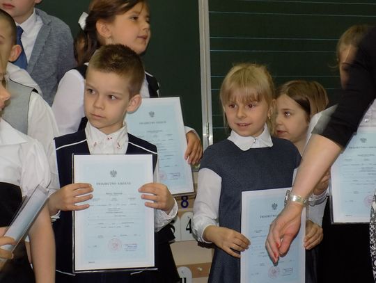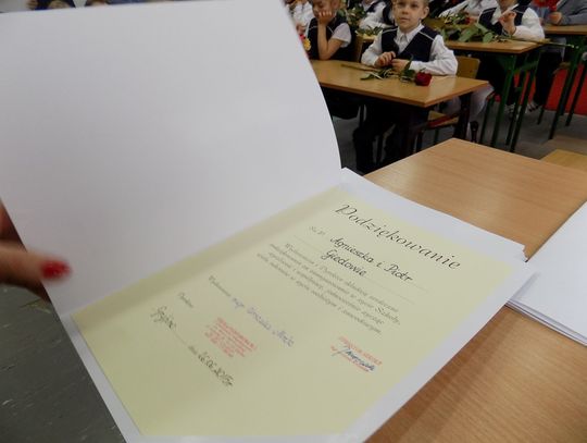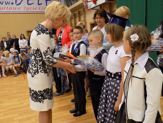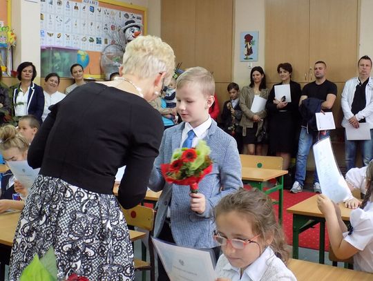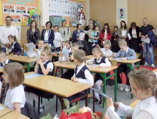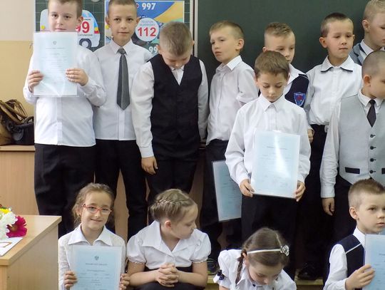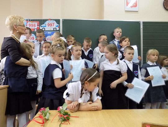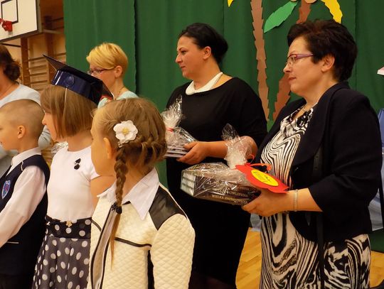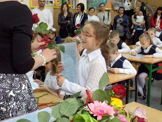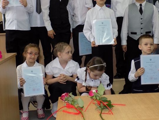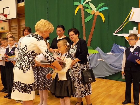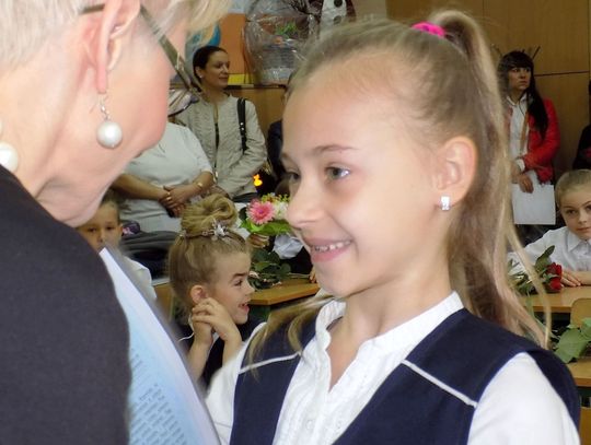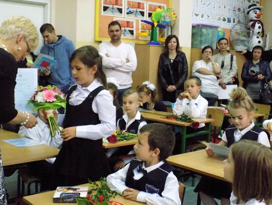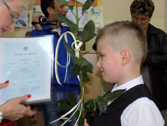 No i wreszcie świadectwa. Przejęte dzieciaki, wzruszeni rodzice otrzymujący podziękowania za współpracę, za wychowanie swoich pociech. Trudno się było zorientować czego było więcej - wakacyjnych przestróg, kwiatów czy przytulania.