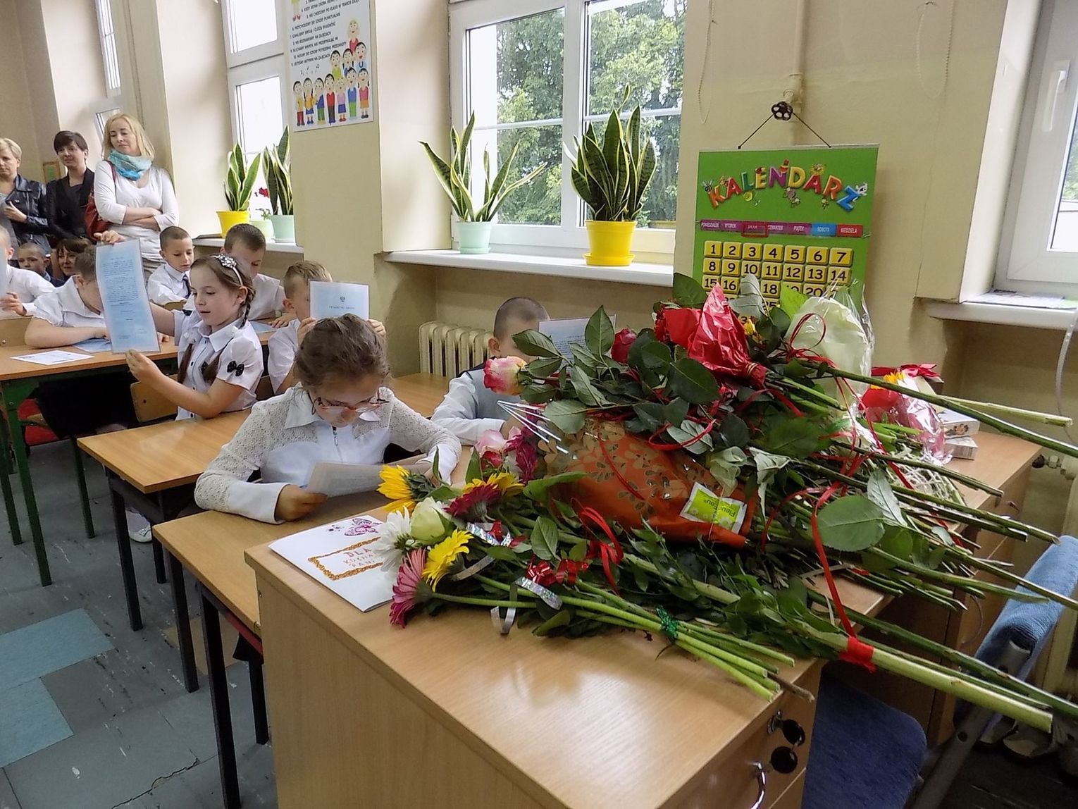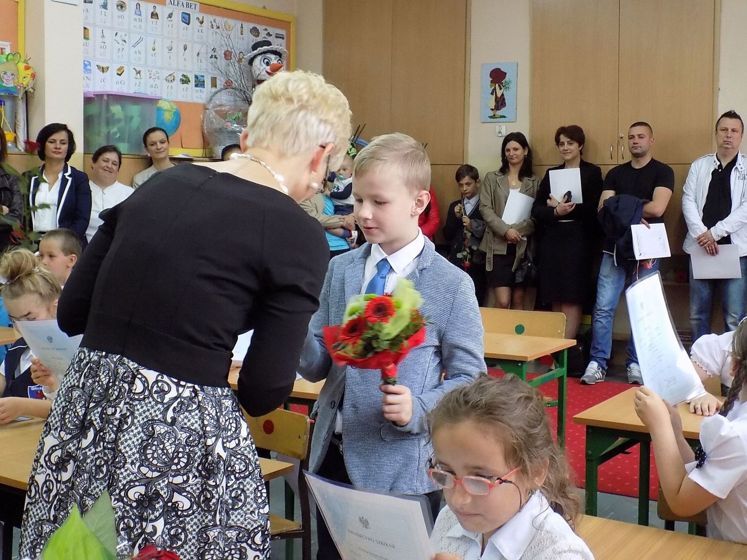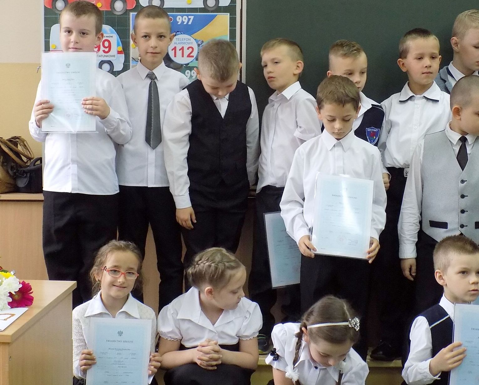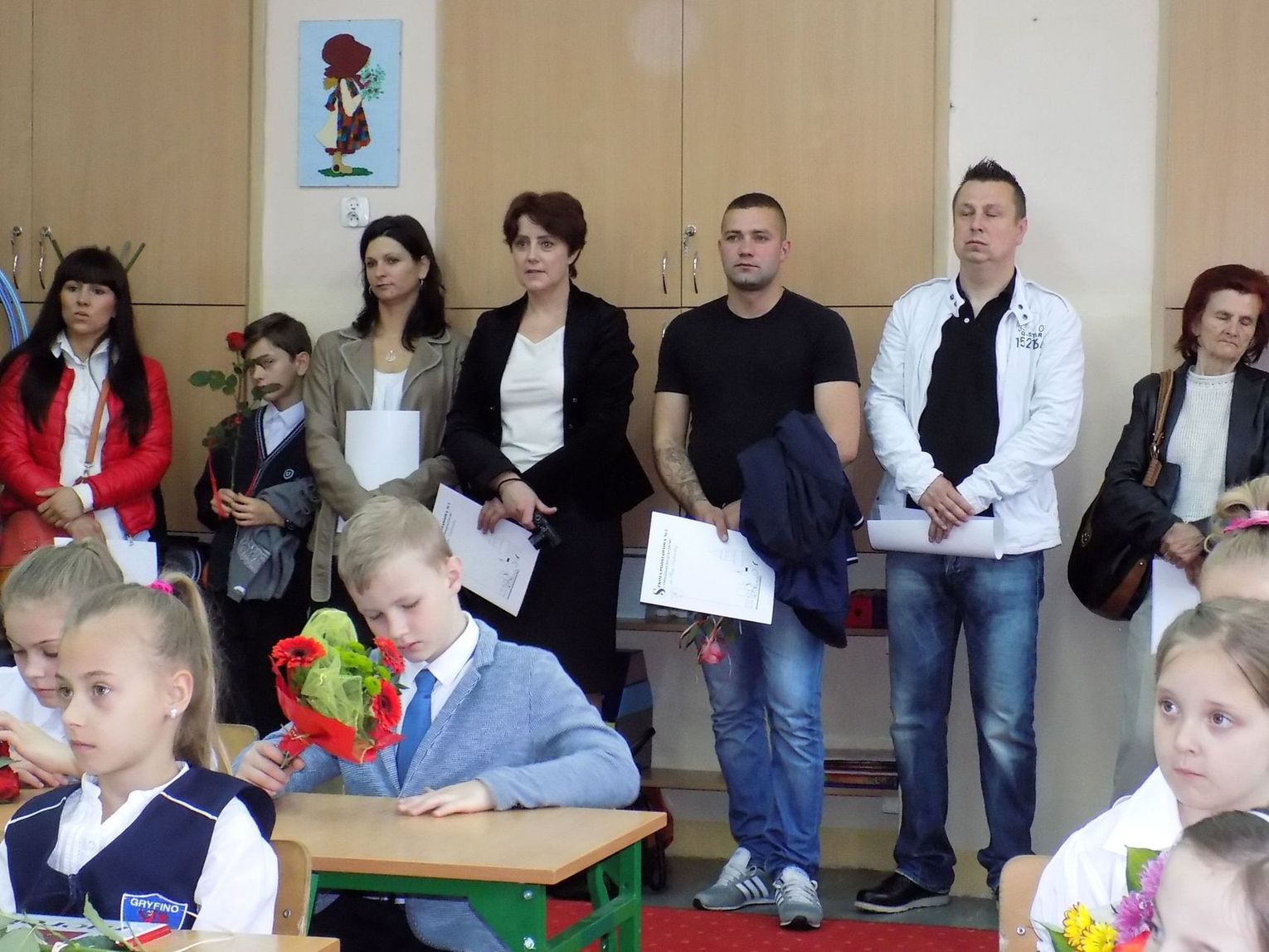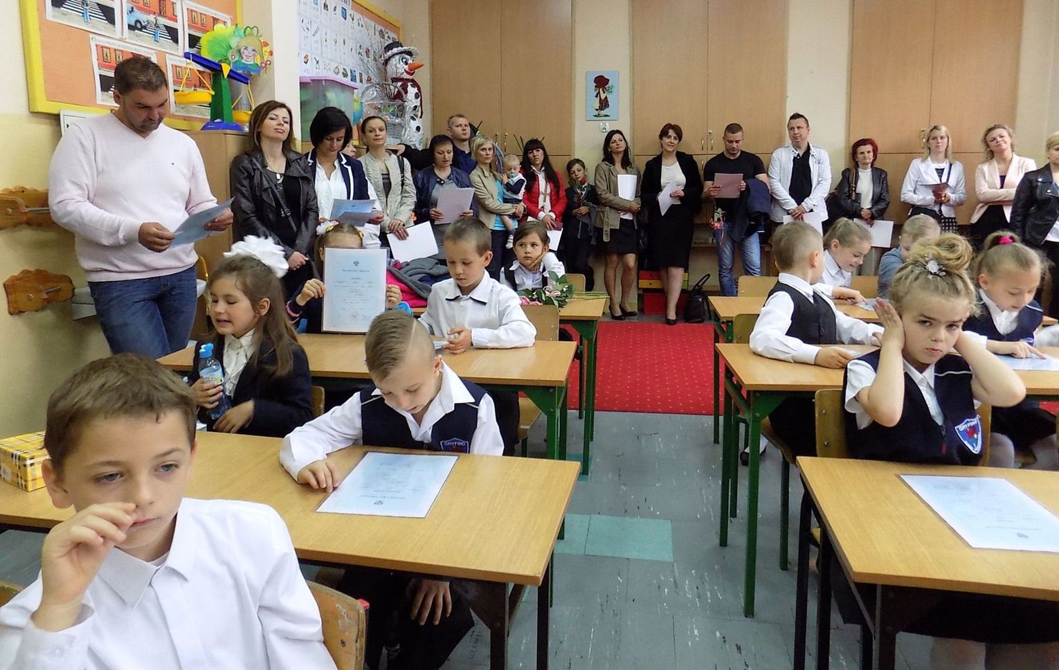No i wreszcie świadectwa. Przejęte dzieciaki, wzruszeni rodzice otrzymujący podziękowania za współpracę, za wychowanie swoich pociech. Trudno się było zorientować czego było więcej - wakacyjnych przestróg, kwiatów czy przytulania.