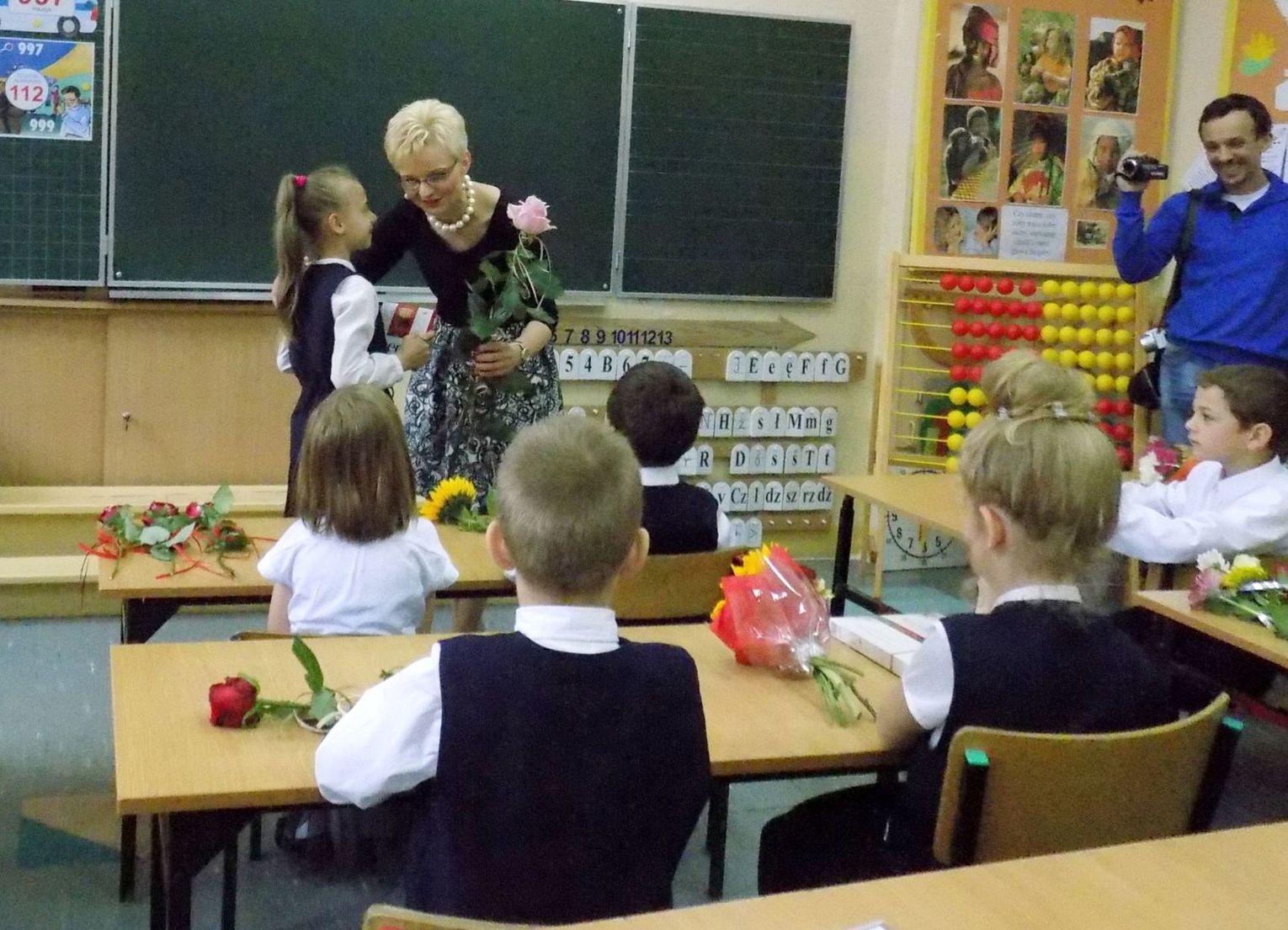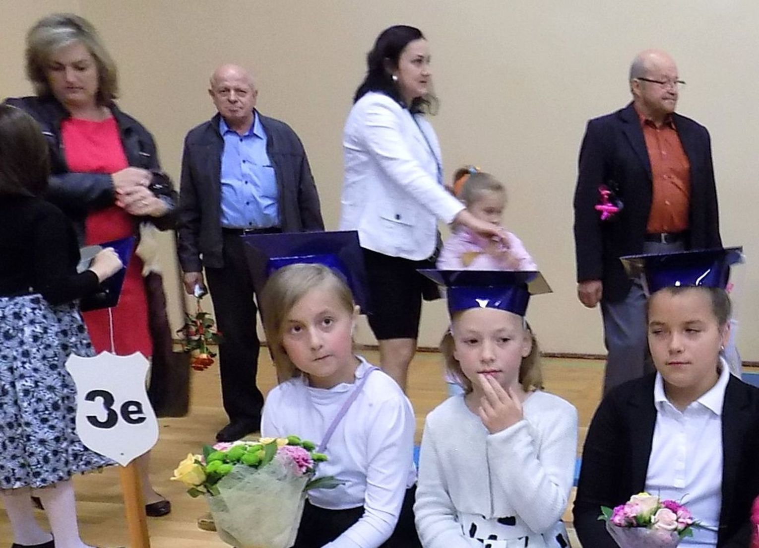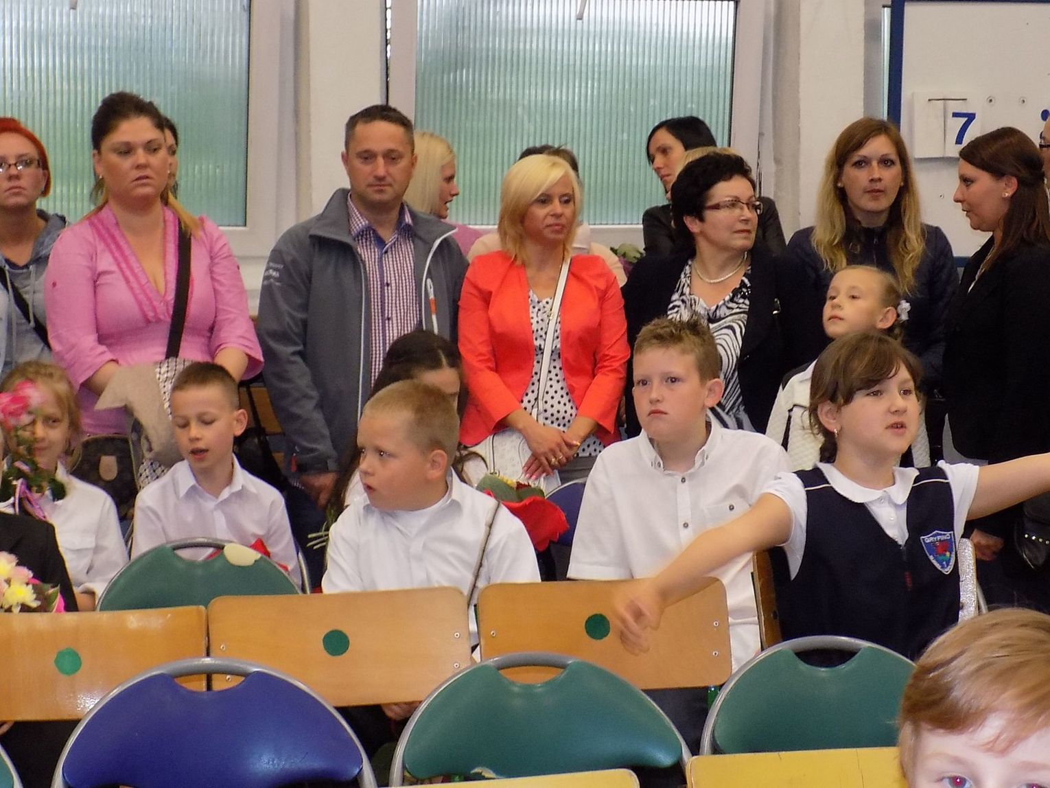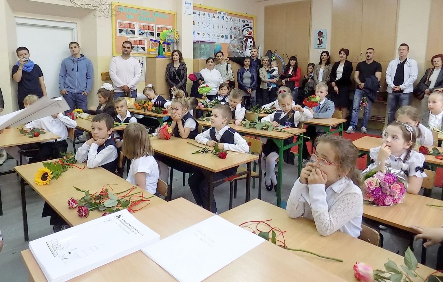Po krótkiej, świetnie przygotowanej części artystycznej i po takim najprawdziwszym dzwonku z dawnych lat, którym pani dyrektor obwieściła początek wakacji, uczniowie udali się ze swoimi wychowawczyniami do klas. Dzięki uprzejmości Urszuli Mróz, wychowawczyni kl. 1 c mogłam uczestniczyć w bardzo wzruszającej chwili rozdawania świadectw.