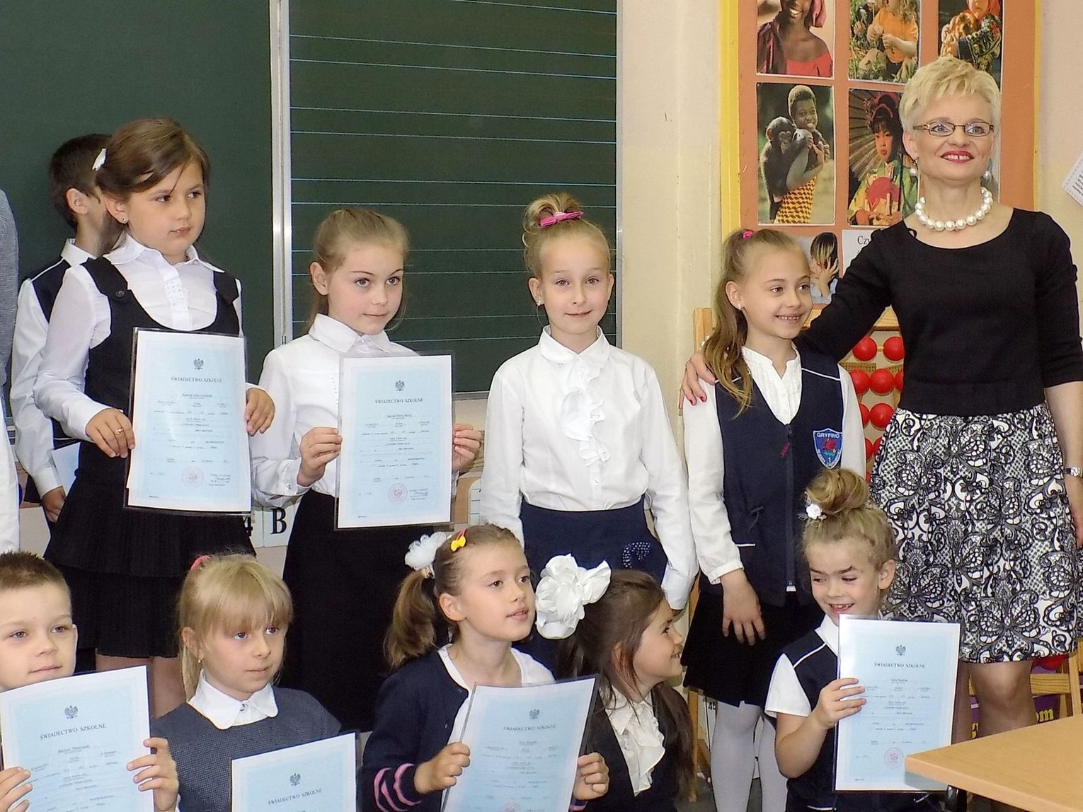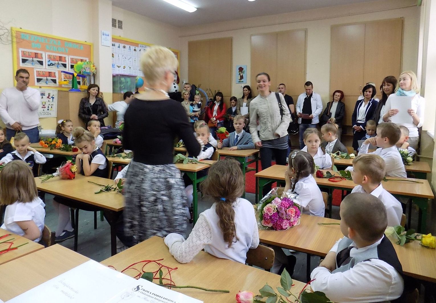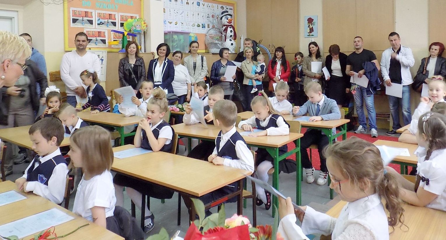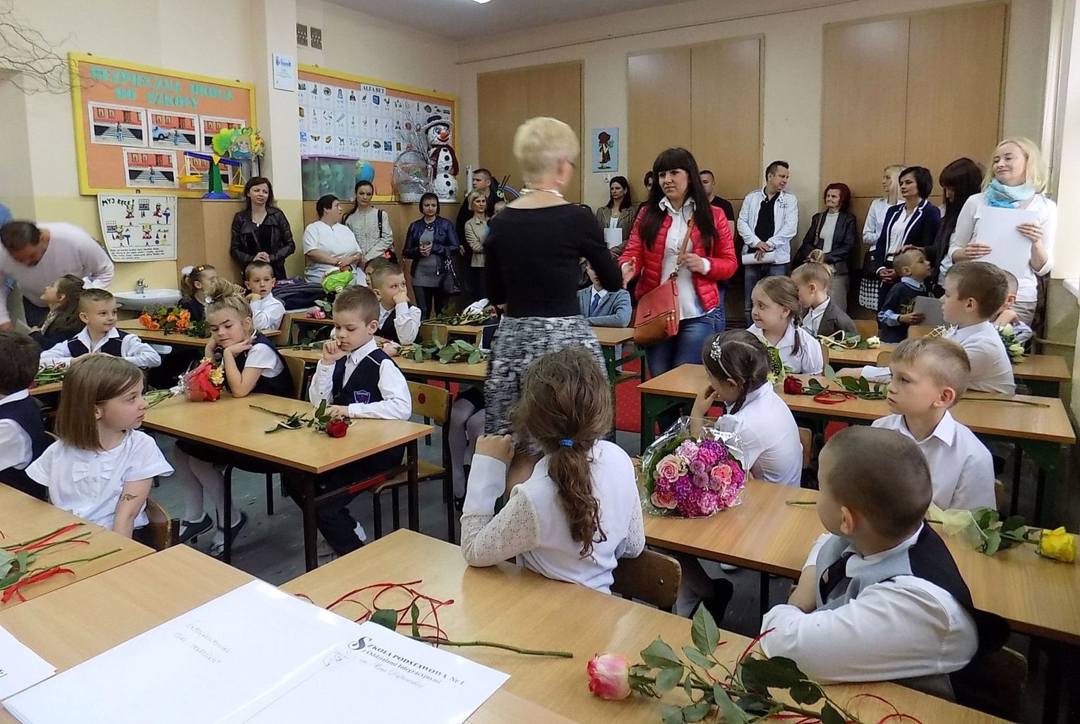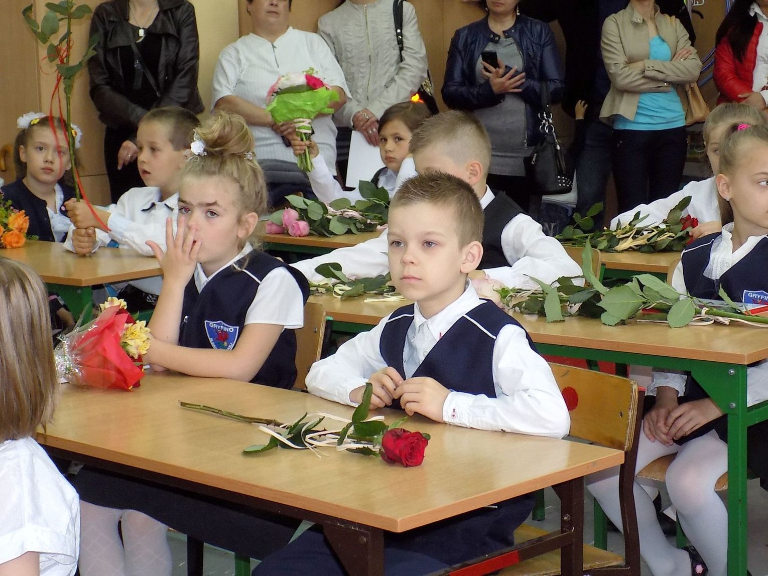 Po krótkiej, świetnie przygotowanej części artystycznej i po takim najprawdziwszym dzwonku z dawnych lat, którym pani dyrektor obwieściła początek wakacji, uczniowie udali się ze swoimi wychowawczyniami do klas. Dzięki uprzejmości Urszuli Mróz, wychowawczyni kl. 1 c mogłam uczestniczyć w bardzo wzruszającej chwili rozdawania świadectw.