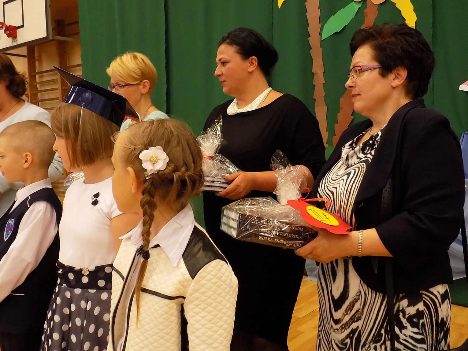 Uczniowie z największą powagą słuchali tego, o czym mówiła zawsze uśmiechnięta (chociaż czasem trochę sroga) ukochana pani dyrektor. Jolanta Kroczak w swych podziękowaniach za całoroczny trud nie pominęła nikogo. Wszyscy – zarówno pedagodzy, jak i rada rodziców oraz panie gotujące smaczne obiadki - pracują dla dzieci.