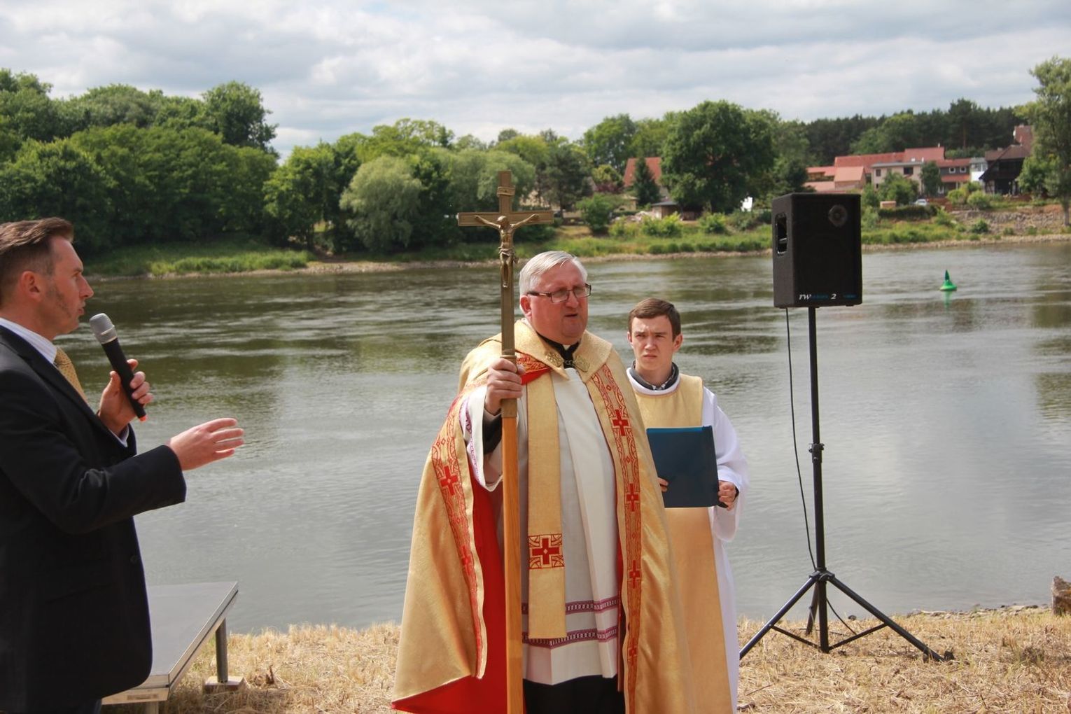 Właśnie tam ks. dziekan Michał Kostrzewa dokonał błogosławieństwa Odry aby bezpiecznie można było się kąpać i pływać. Pomysłodawcą zaznaczenia najdalej na zachód położonego miejsca w Polsce jest mieszkaniec gm. Cedynia Zbigniew Bogdanowicz.
