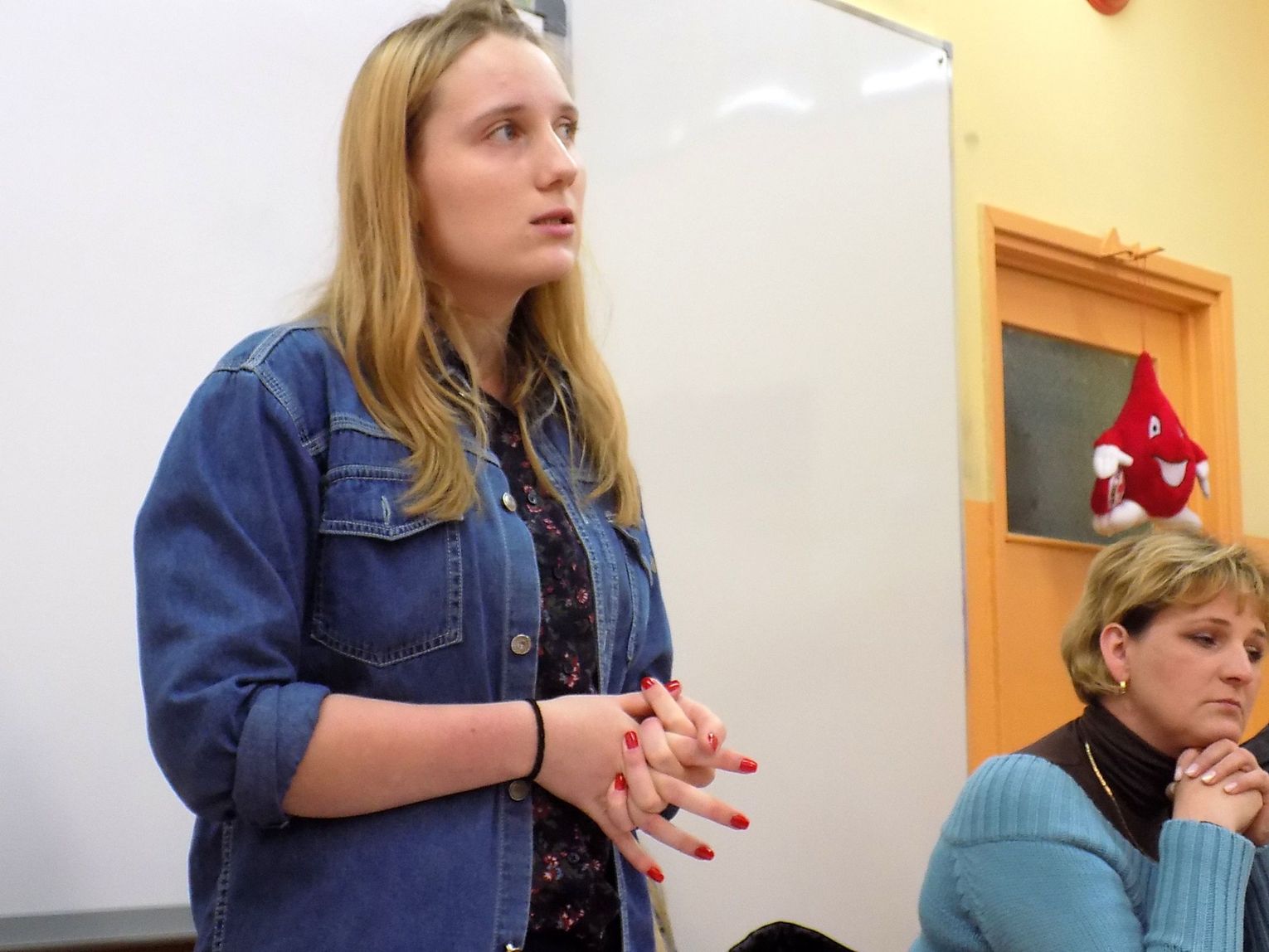 Wolontariuszka i uczennica liceum Oliwia Makuch zachęcała swoich kolegów do oddawania krwi. Młodzież była zainteresowana, lecz pytań było niewiele.