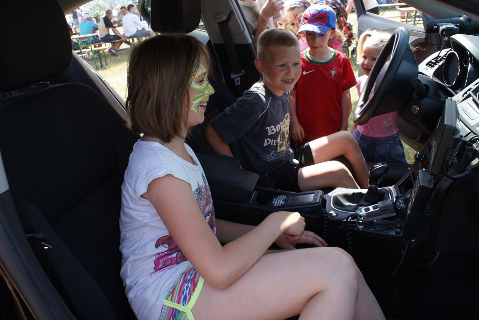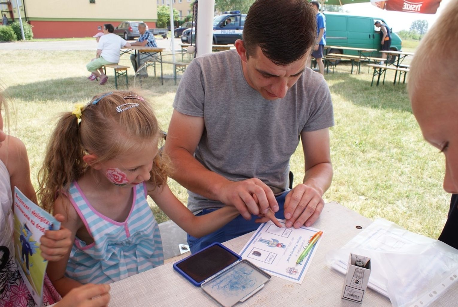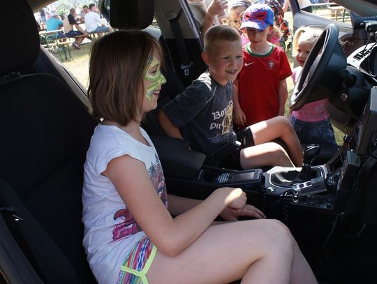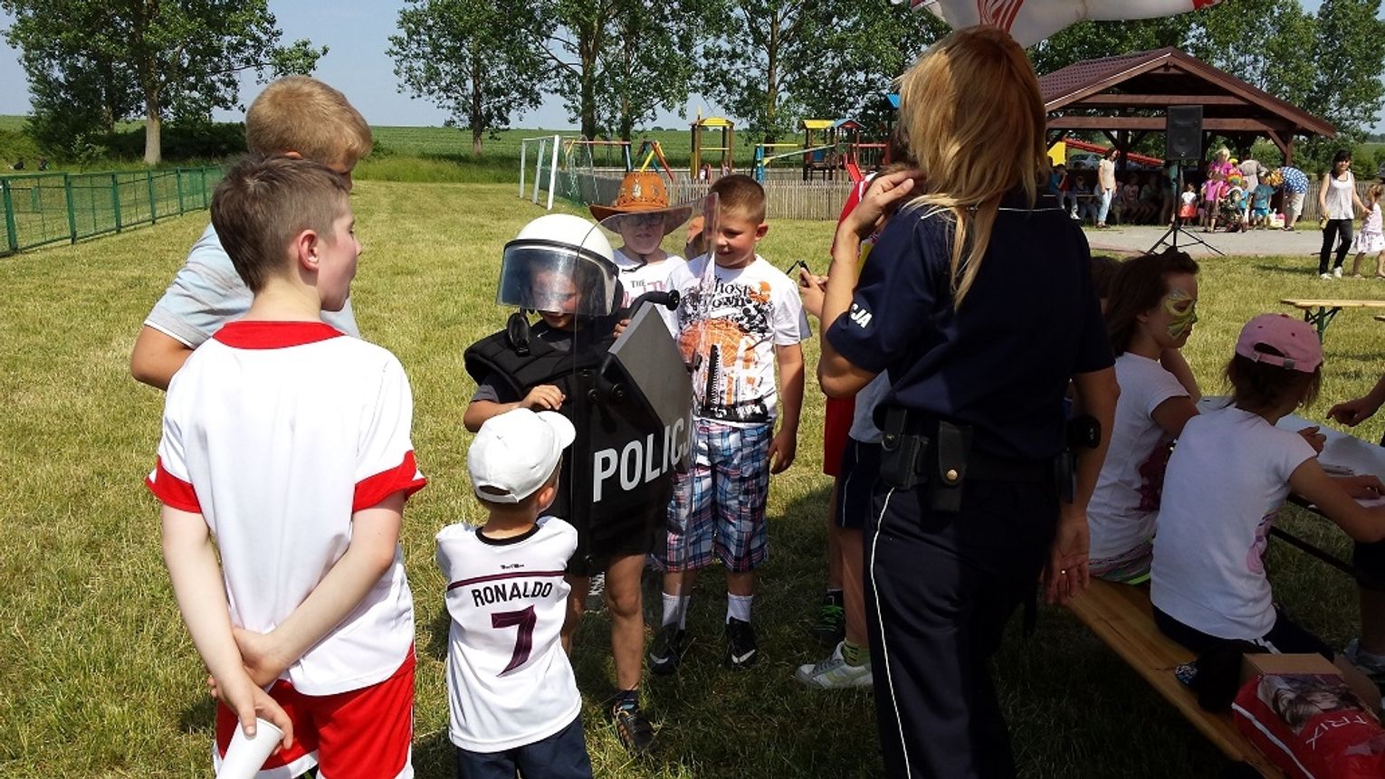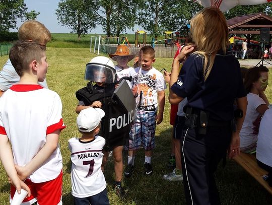 Na zaproszenie rady Sołeckiej, dzieci odwiedzili policjanci z KPP Policji w Gryfinie, którzy demonstrowali wyposażenie policji. Były konkursy, malowanki, zabawy, z nagrodami i słodyczami, przekazanymi przez KW Policji w Szczecinie. Dzieci miały też możliwość zapoznania się z wnętrzem i wyposażeniem nieoznakowanego samochodu marki Opel-Insygnia, a najwięcej frajdy, sprawiała im cała gama sygnałów dźwiękowych pojazdu. Każdy z uczestników, mógł otrzymać okolicznościowy certyfikat policji uczestnictwa w festynie, na którym były odciśnięte jego linie papilarne paluszków.