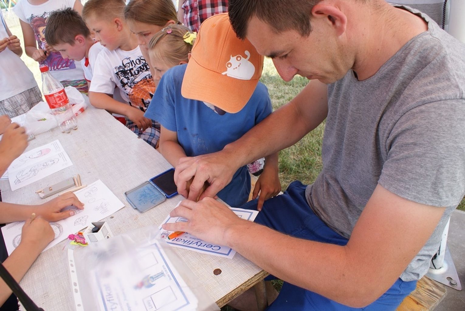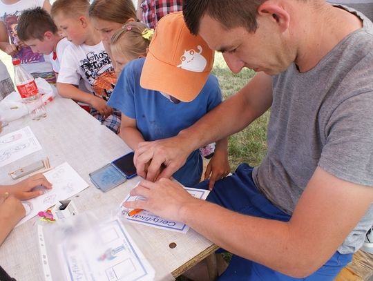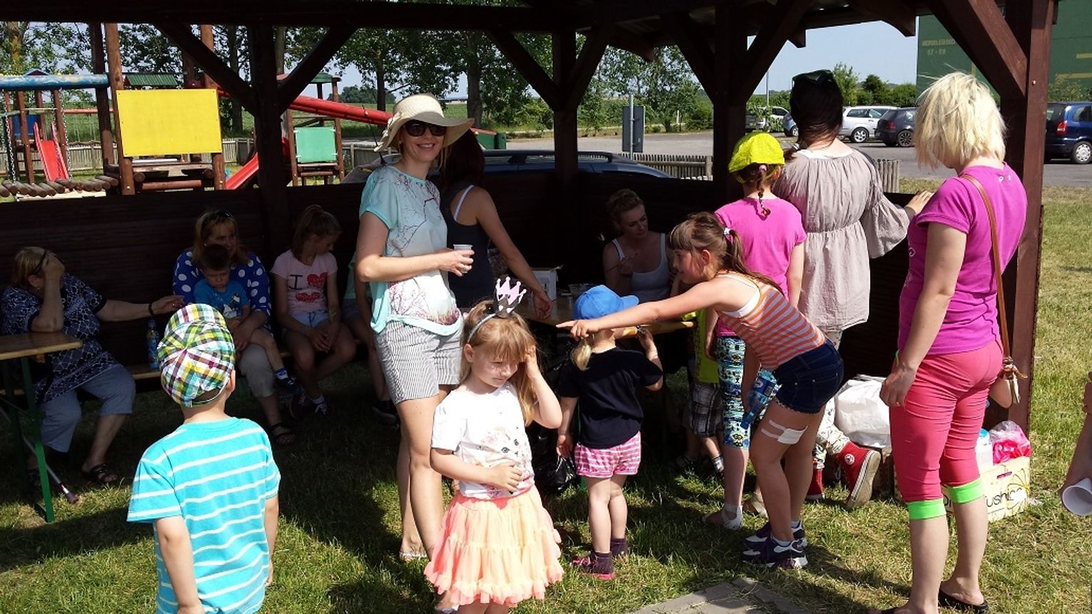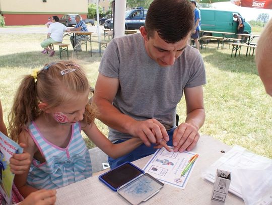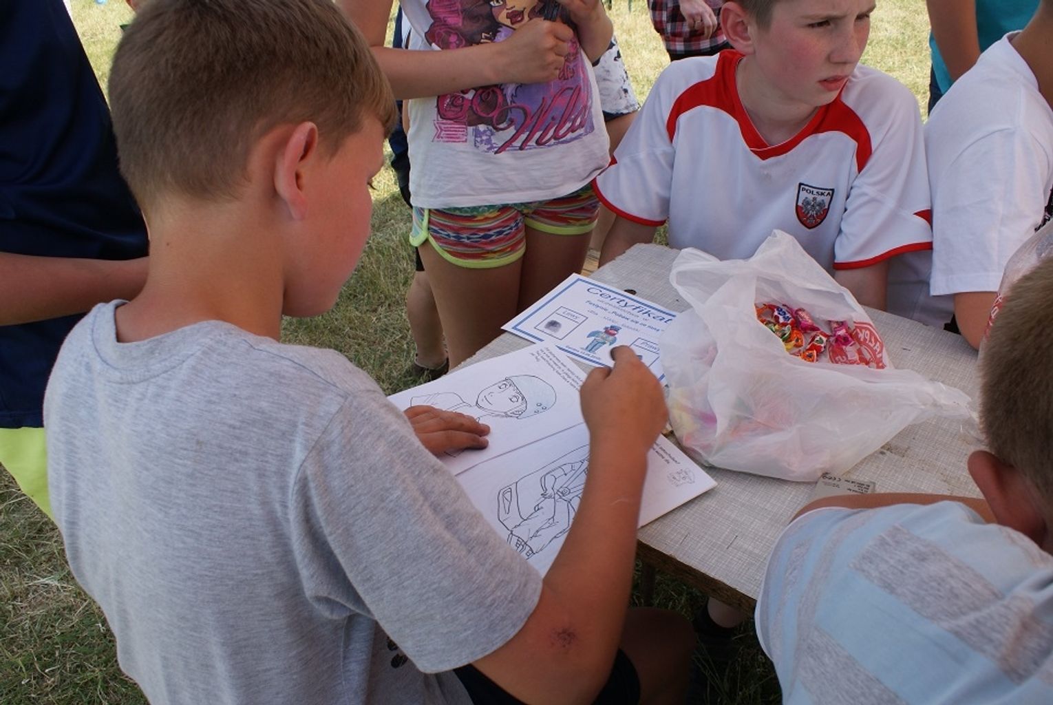 Na zaproszenie rady Sołeckiej, dzieci odwiedzili policjanci z KPP Policji w Gryfinie, którzy demonstrowali wyposażenie policji. Były konkursy, malowanki, zabawy, z nagrodami i słodyczami, przekazanymi przez KW Policji w Szczecinie. Dzieci miały też możliwość zapoznania się z wnętrzem i wyposażeniem nieoznakowanego samochodu marki Opel-Insygnia, a najwięcej frajdy, sprawiała im cała gama sygnałów dźwiękowych pojazdu. Każdy z uczestników, mógł otrzymać okolicznościowy certyfikat policji uczestnictwa w festynie, na którym były odciśnięte jego linie papilarne paluszków.