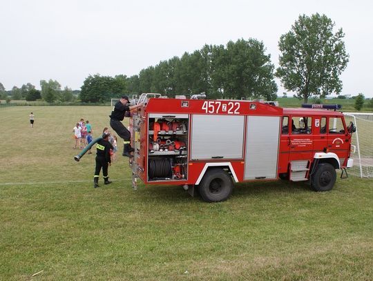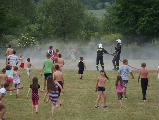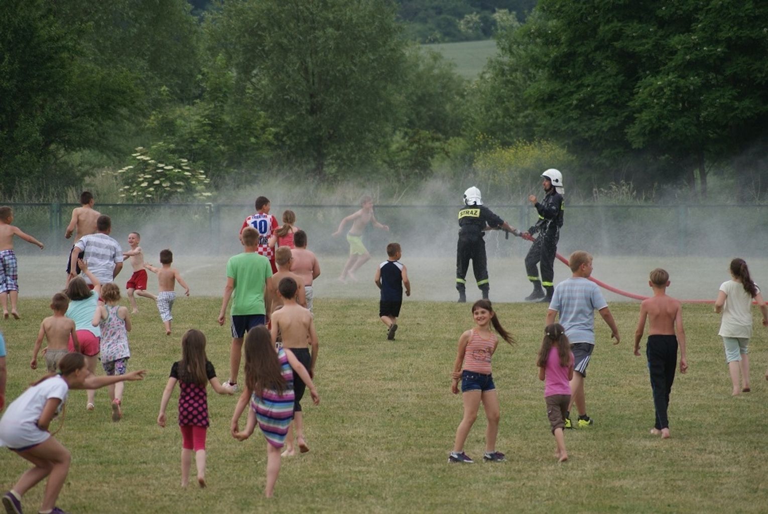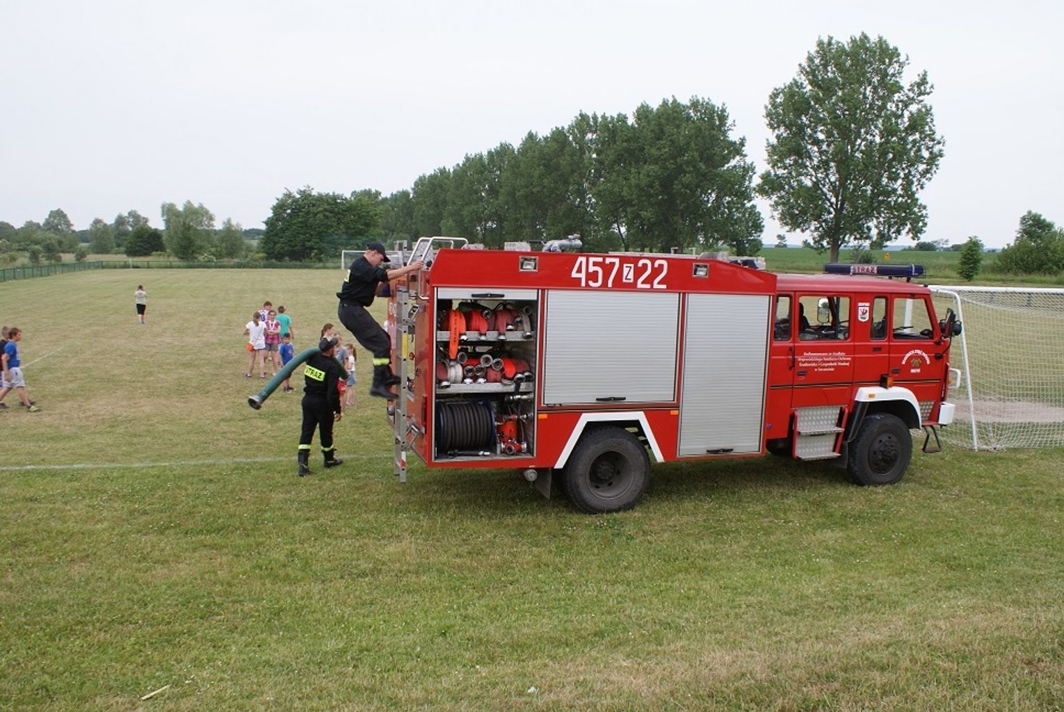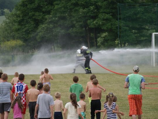 Po południu dzieci odwiedził pojazdem strażackim zastęp OSP Wełtyń, w którym od niedawna ćwiczą strażacy z Gardna. Upalna pogoda sprzyjała kąpielom w kurtynie wodnej, a dodatkową atrakcją był przewóz dzieci na sygnale wokół terenu boiska.