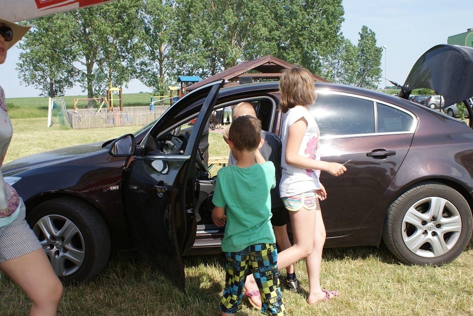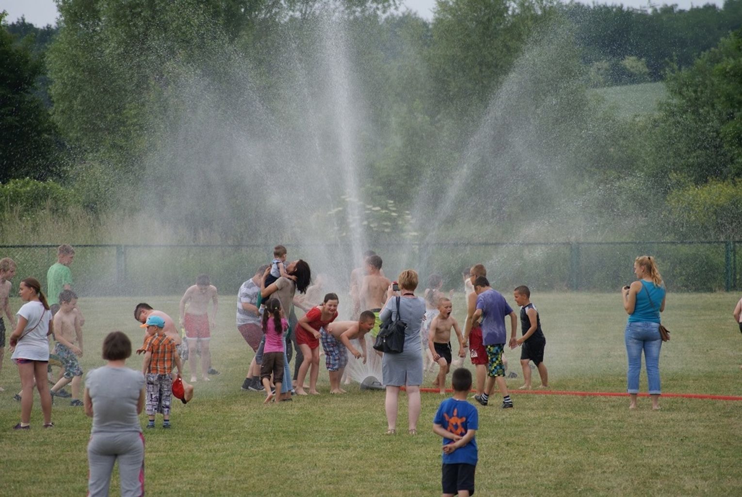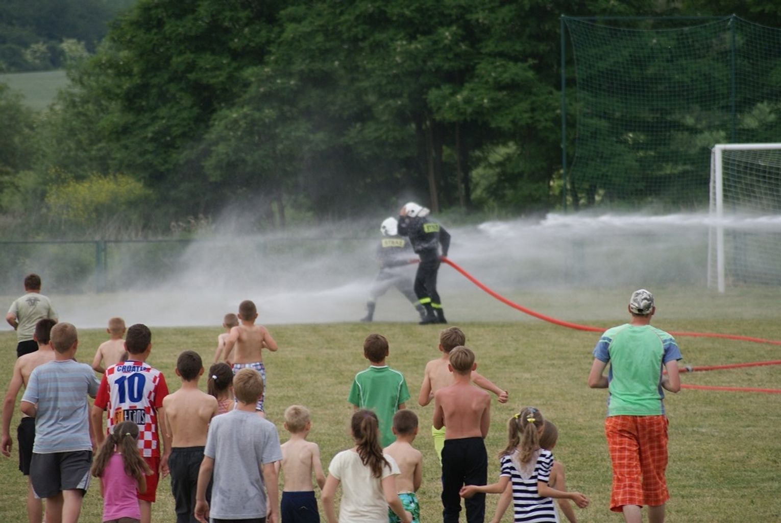 Po południu dzieci odwiedził pojazdem strażackim zastęp OSP Wełtyń, w którym od niedawna ćwiczą strażacy z Gardna. Upalna pogoda sprzyjała kąpielom w kurtynie wodnej, a dodatkową atrakcją był przewóz dzieci na sygnale wokół terenu boiska.