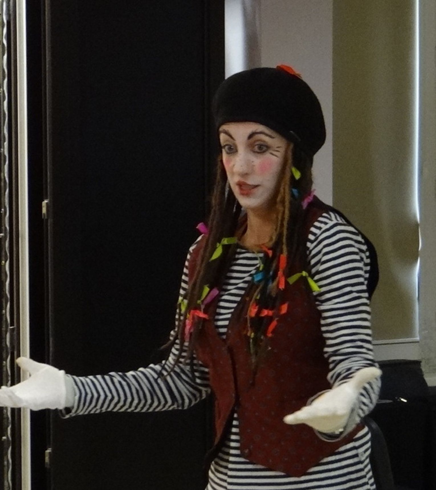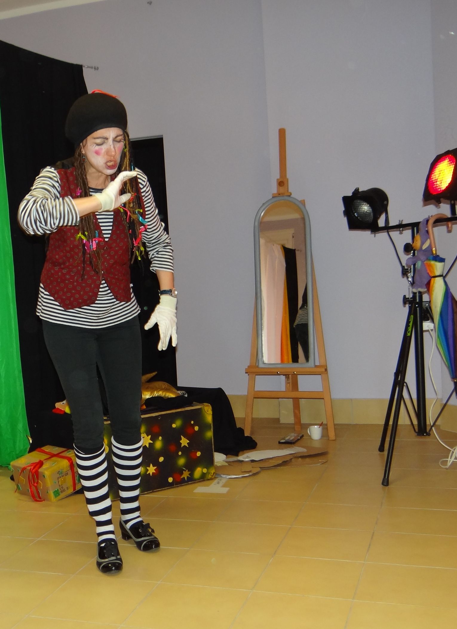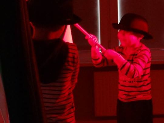 Teatr cieni był pierwszą formą teatralną, w której dzieci znakomicie się sprawdziły. Pantomima i opowiadanie historii bez słów też nie sprawiły maluchom większych trudności. Uczestnicy warsztatów dowiedzieli się także, jak nazywają się teatralne lampy, co to są rekwizyty, scenografia, kim jest reżyser i po co nam scenariusz. Młodzi warsztatowicze nauczyli się także słów teatr i aktor, ale w języku niemieckim.